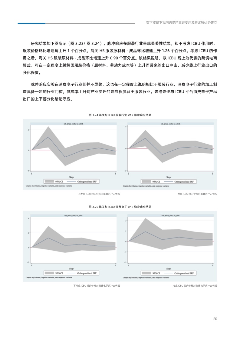 该结果说明,对于服装和消费电子类产业,ICBU线上平台出口的产业链分化程度,弱于一般贸易以线下为主要出口形势的产业分化程度。此外,报告研究发现,以ICBU线上为代表的跨境电商模式,可在一定程度上缓解因价格(原材料、劳动力成本等)上升而带来的出口冲击。