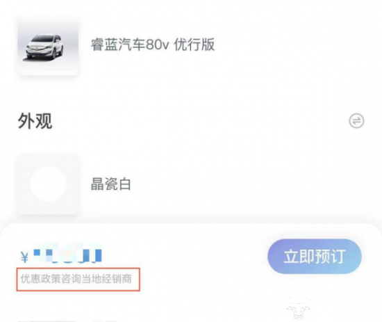 此外,睿蓝汽车还推出了电池租赁模式,但睿蓝汽车并未在其订购平台写明电池租赁的具体政策,仅在订购界面有一行小字提醒“优惠政策等请咨询当地经销商”。目前,睿蓝汽车似乎还面临着不同地区购车政策也不尽相同的情况。