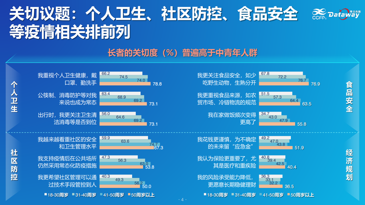 CCFA大健康委员会积极引导行业企业践行《健康中国2030》行动,将“健康”从口号落实为生产力。为此联合行业企业、零点有数展开突发疫情下的活跃长者健康生活需求的研究活动。