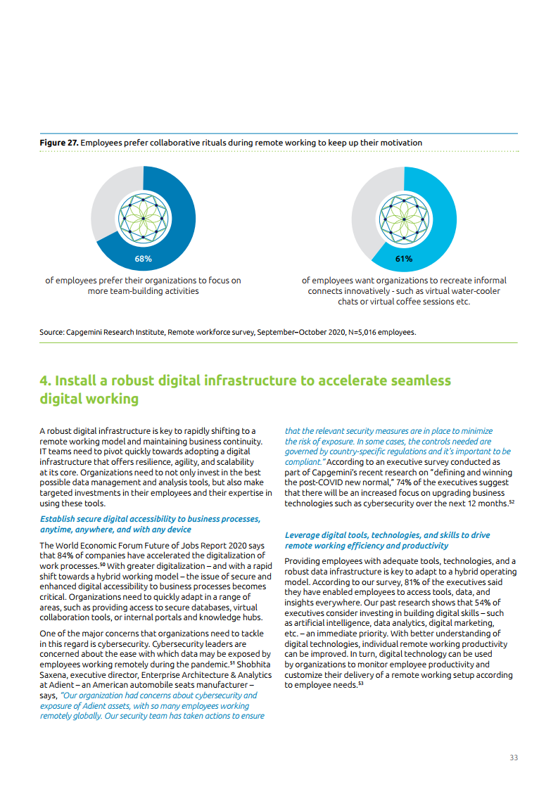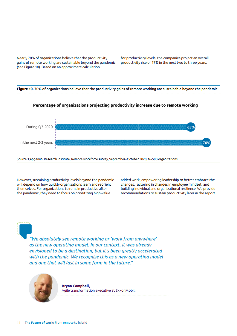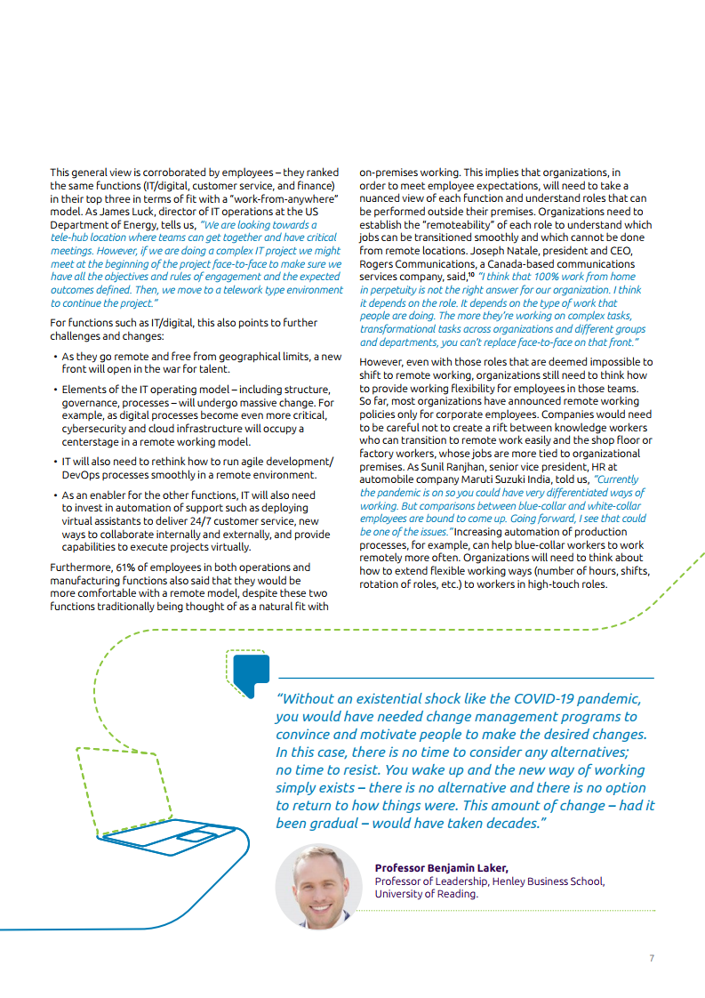 近70%的企业认为远程办公会在疫情过后仍能继续提升工作效率。然而,这在很大程度上取决于企业学习和调整自身方向的速度——考虑到员工心态的变化,以及建立个人和组织的弹性。