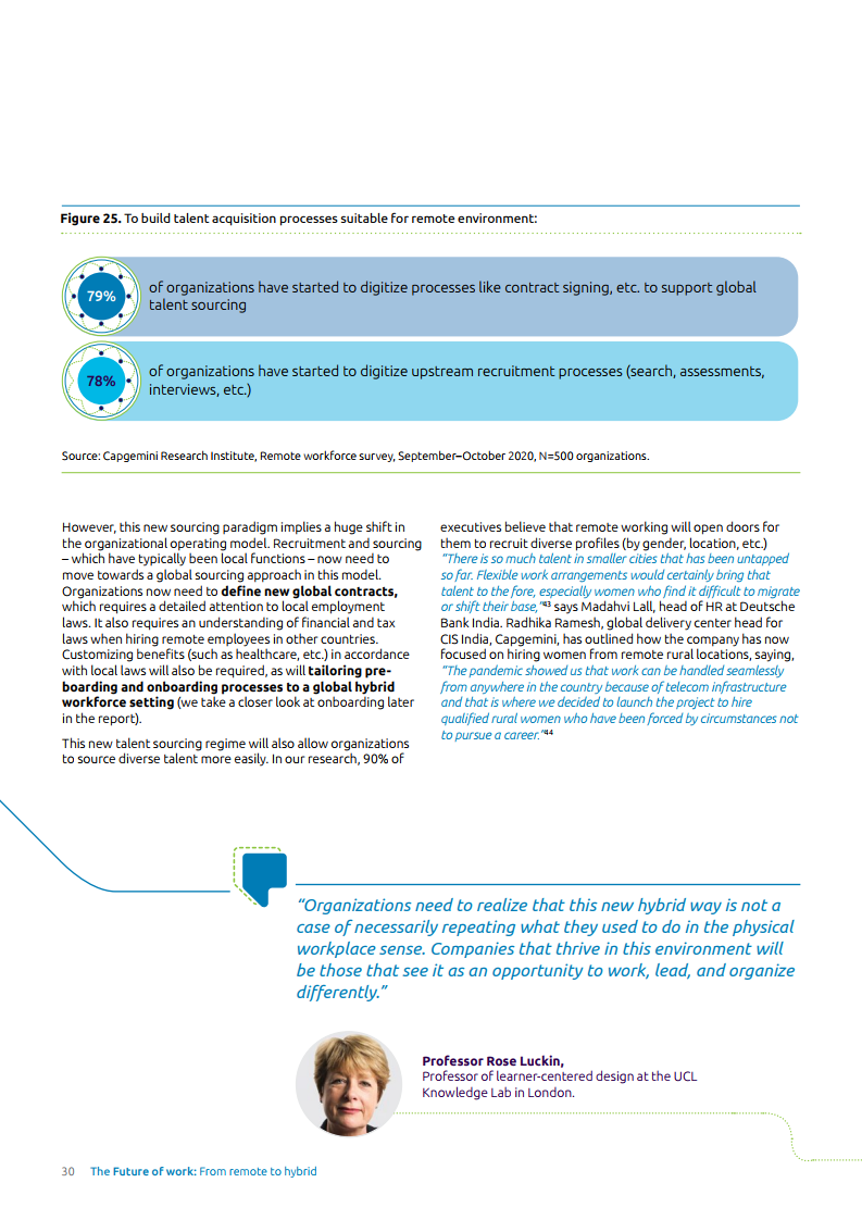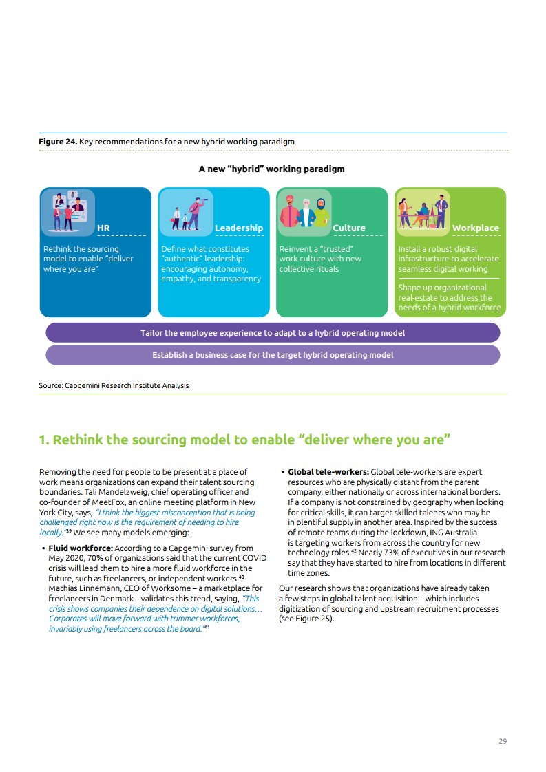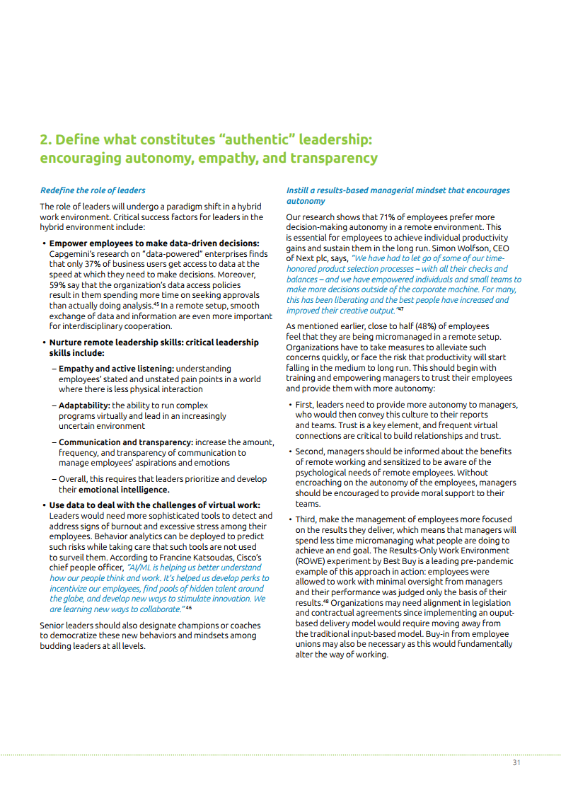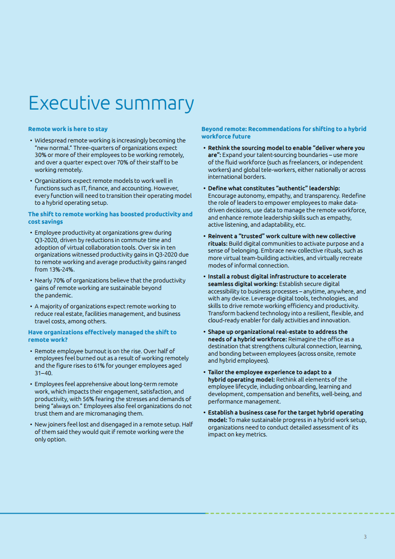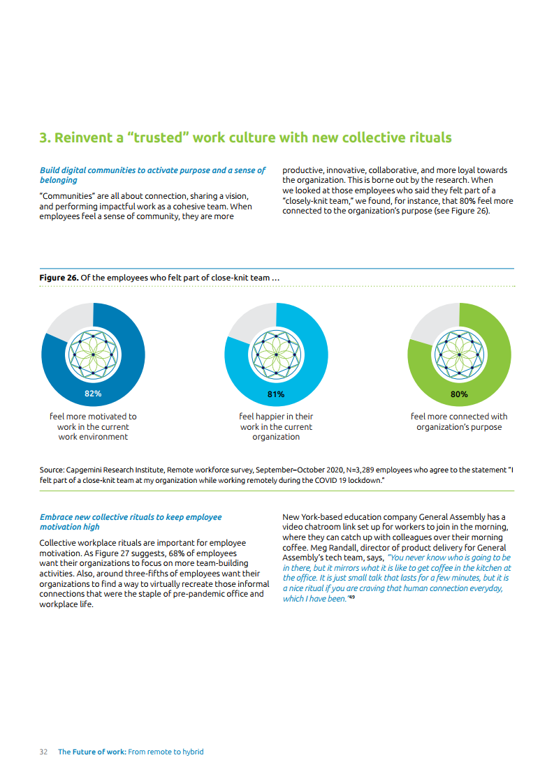 为了继续受益于远程工作并管理员工预期,企业需要找到一种正确操作模式以实现更平衡的混合式工作方法。报告中提到,为了实现这个目标,管理层需要质疑、重新思考现存框架的有效性,并解决组织壁垒和团队障碍。