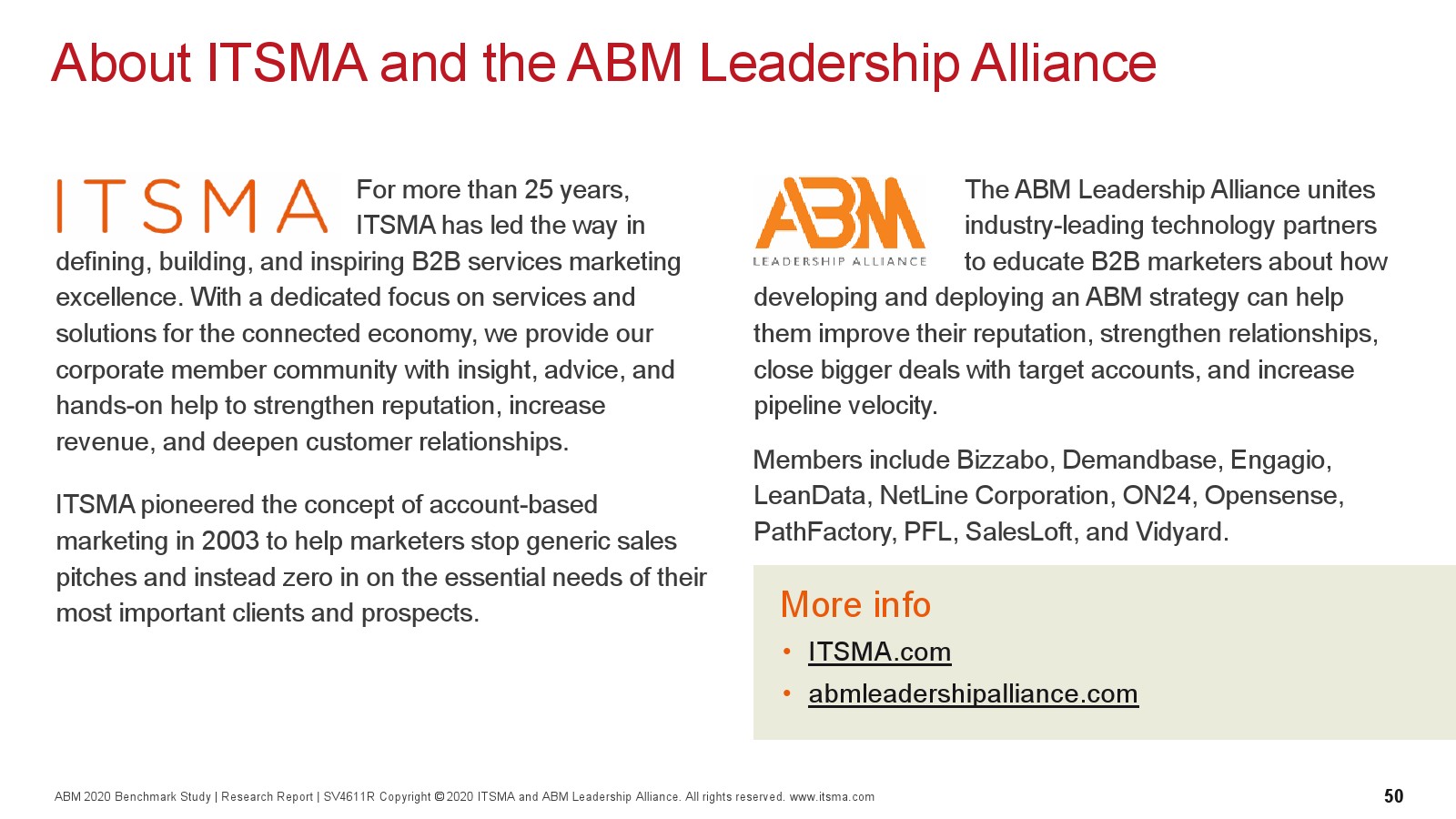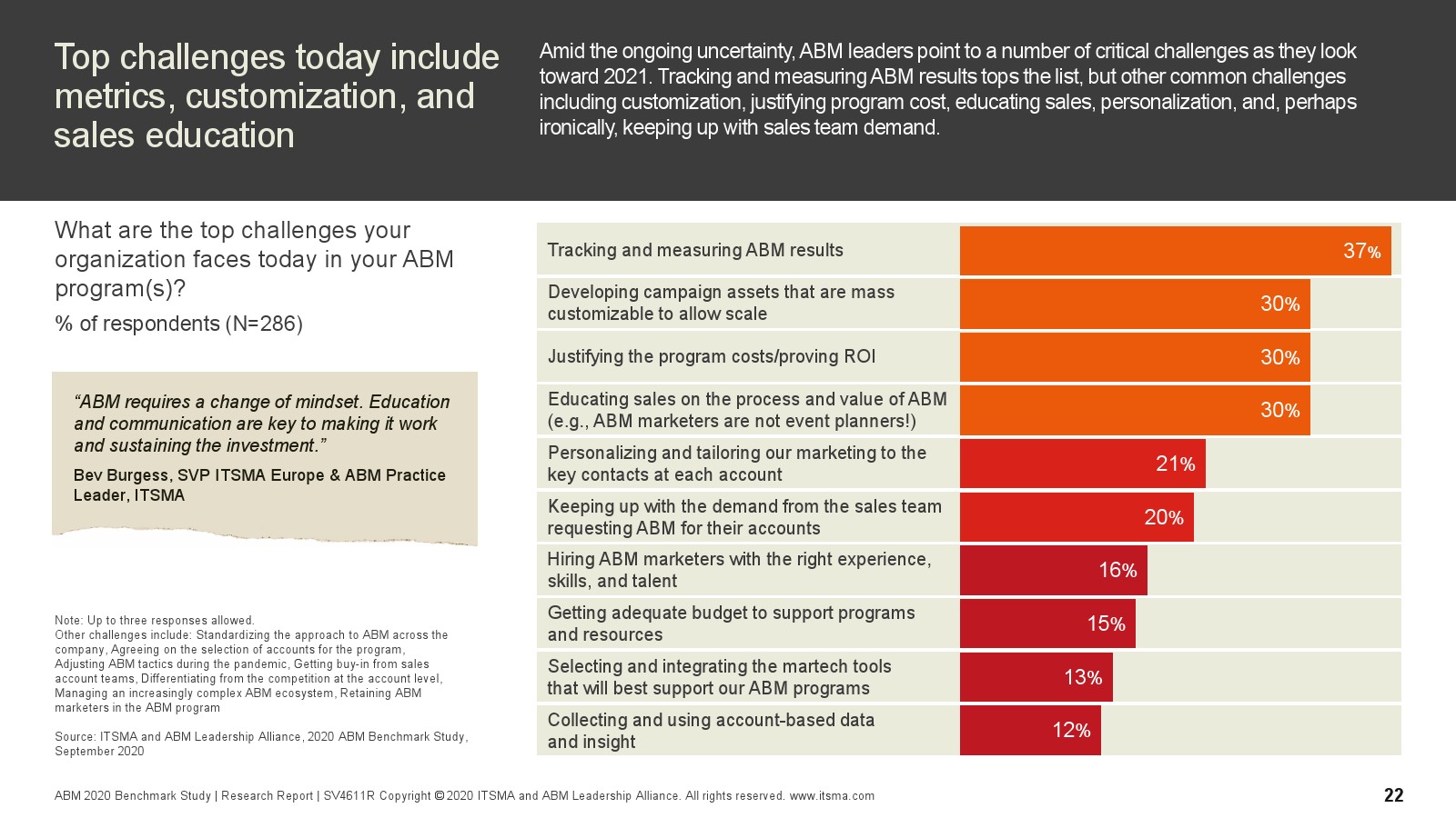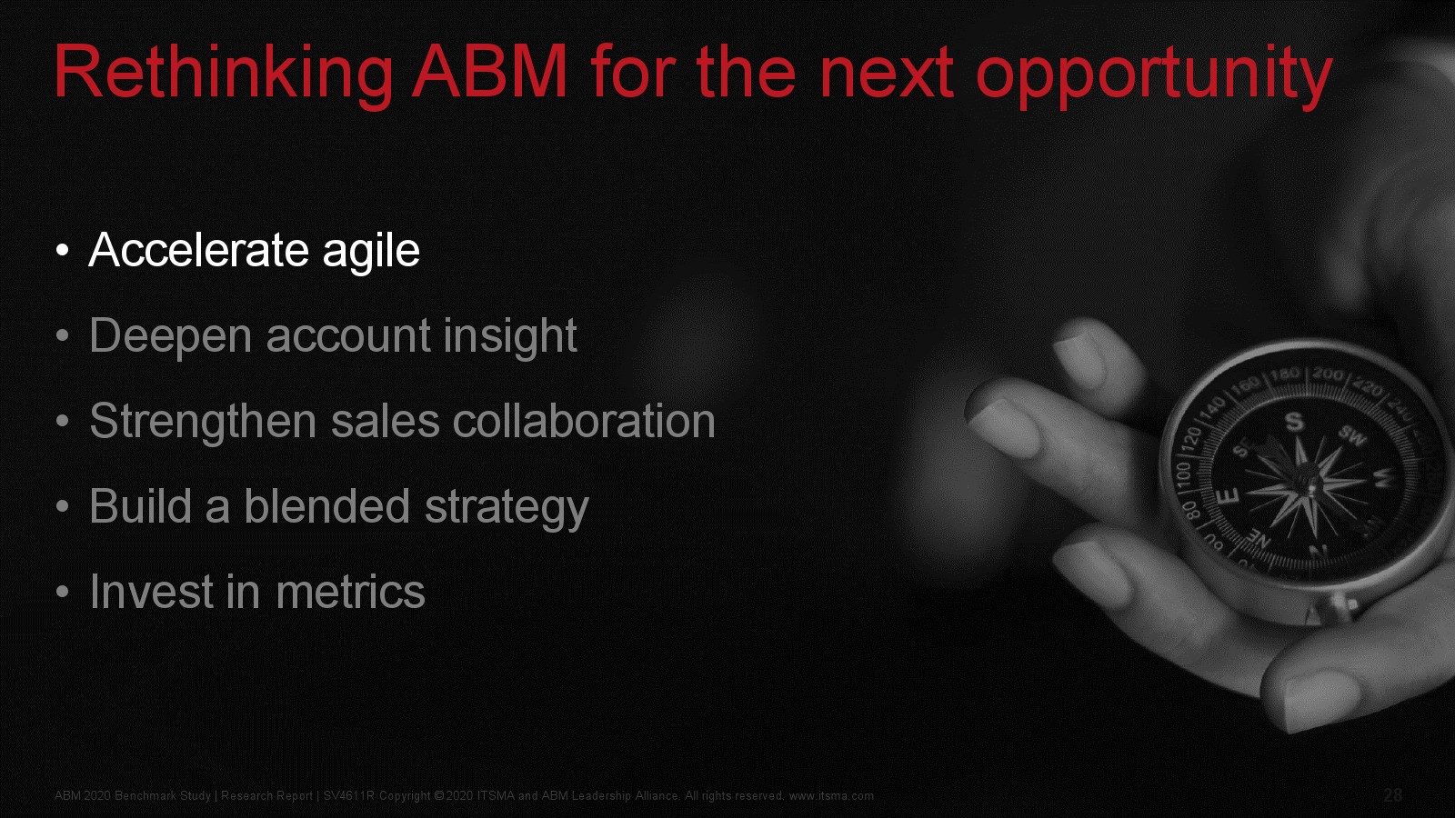 根据ITSMA和ABM发布的2020年ABM报告“重新思考ABM的下一个机会”,公司正在继续投资ABM(基于账户的市场营销),平均27%的营销预算专门用于这一策略。