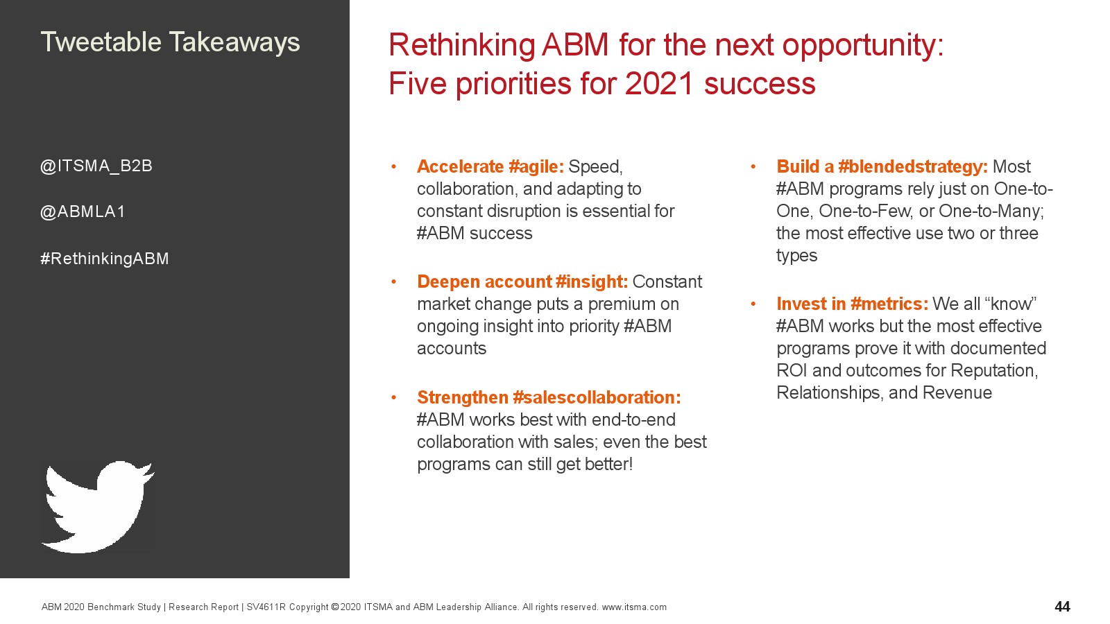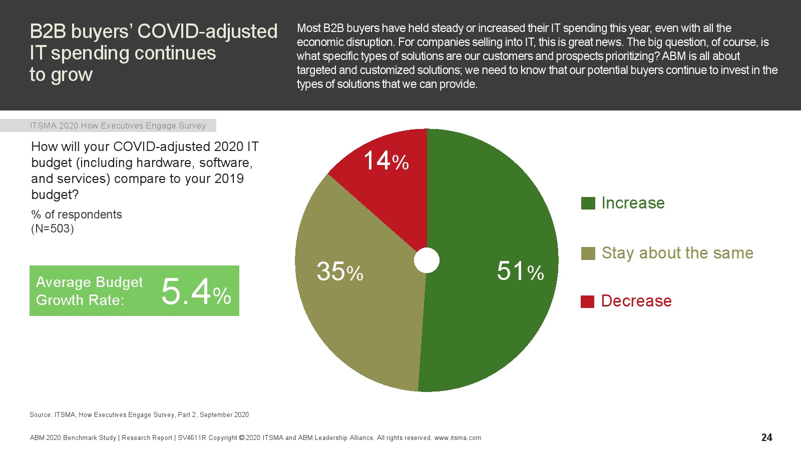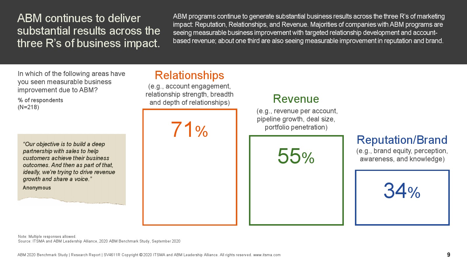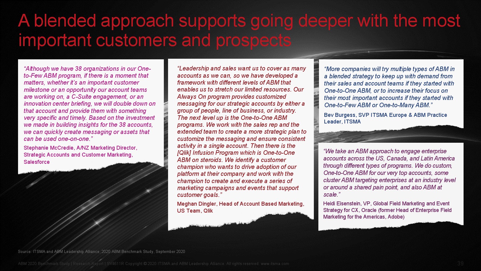 根据ITSMA和ABM发布的2020年ABM报告“重新思考ABM的下一个机会”,公司正在继续投资ABM(基于账户的市场营销),平均27%的营销预算专门用于这一策略。