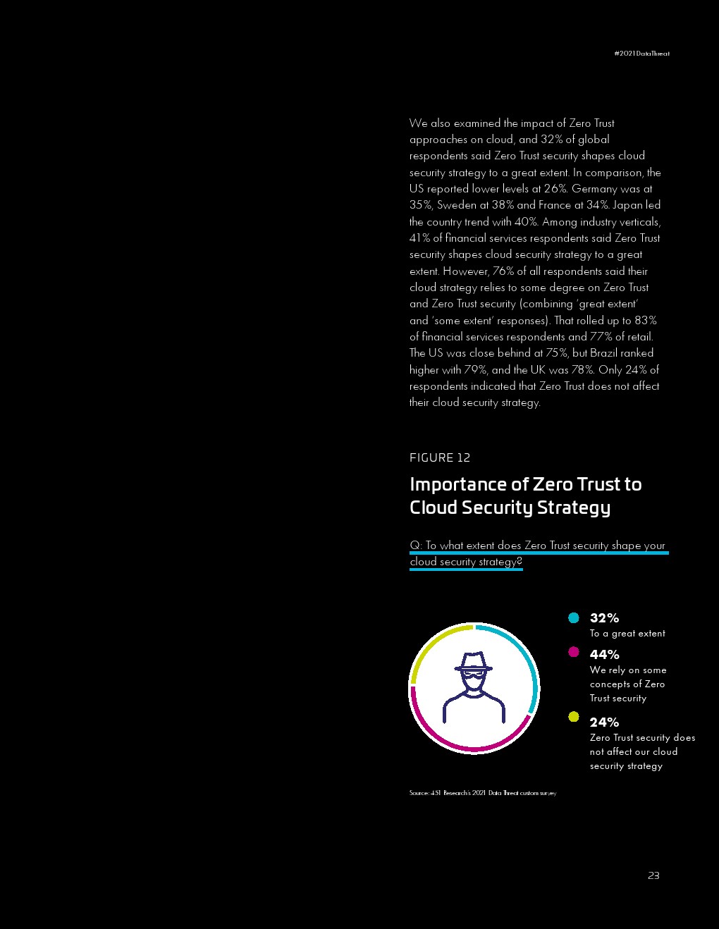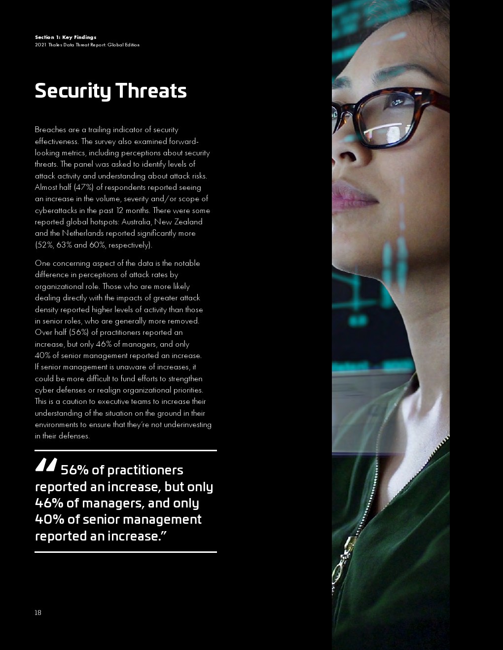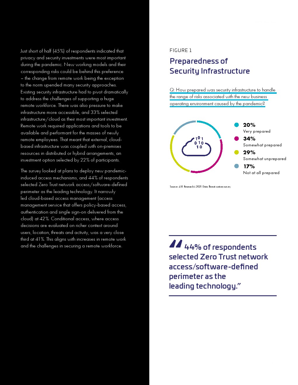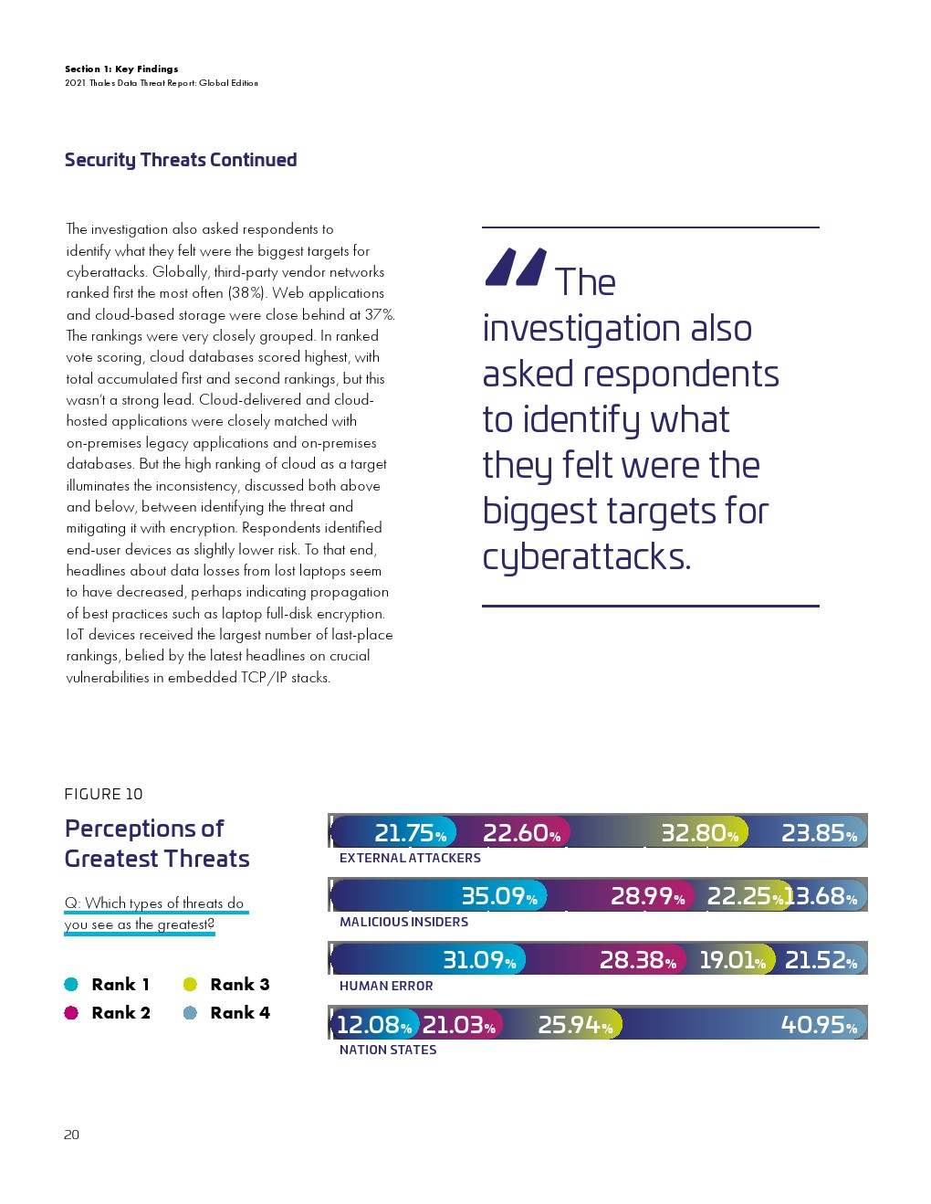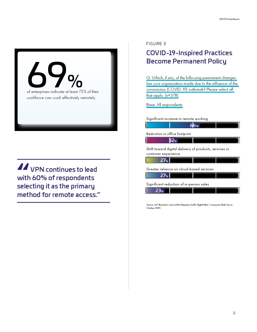 大流行的压力正在影响安全措施和支出。远程工作需要更有效风险管理。云迁移势头强劲,但许多必要的控制措施仍然滞后。用来保护云敏感数据的加密使用率仍然很低。全球对不断变化的风险的意识很高,但这并没有促使企业应对这些风险。入侵事件及其影响给安全规划带来了压力。管理层和从业人员对安全的理解的不一致可能会影响规划和预算。传统的安全担忧依然存在。量子计算的风险引发了人们对安全规划的担忧。