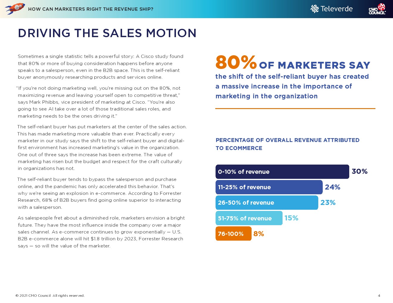 CMO Council发布了新报告“营销人员如何实现营收”,约80%的全球营销领袖认为,在这种数字优先的环境中,越来越独断独行的买家提高了营销在企业中的价值。