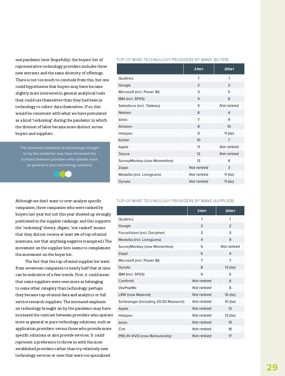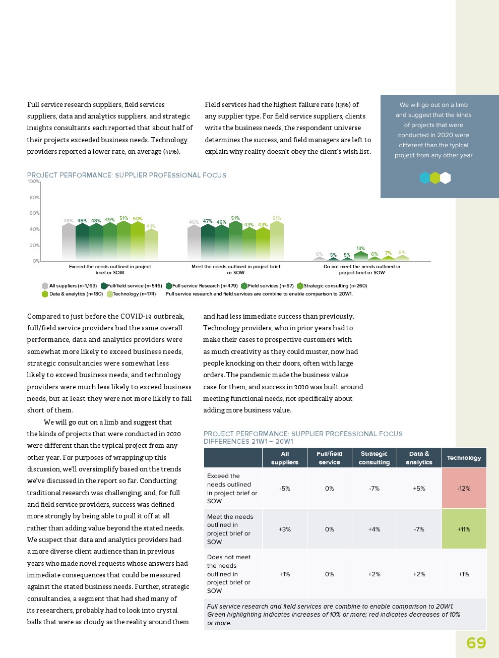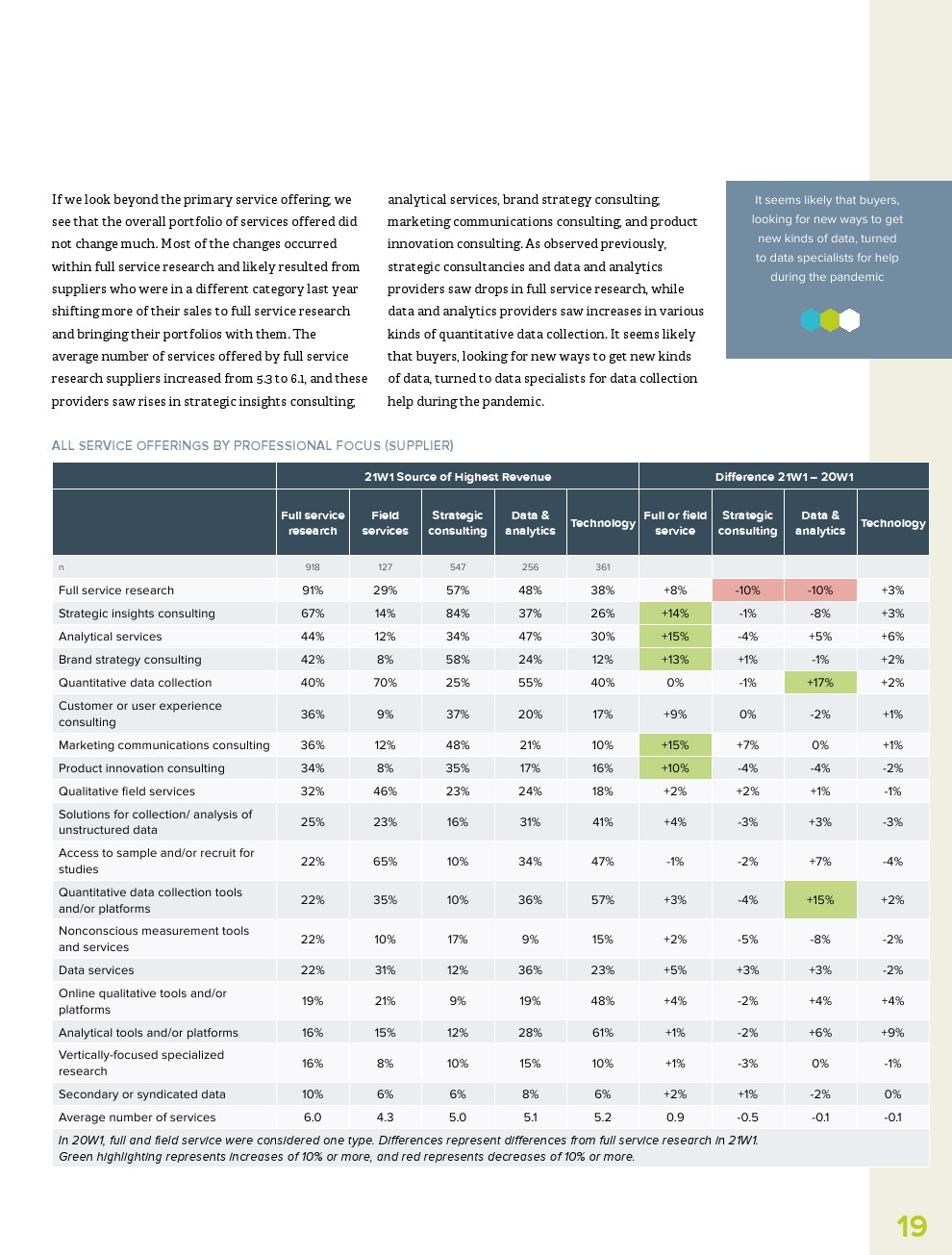 此外,虽然人们希望研究行业在2020年转移到与大流行相关的主题,但AI、过程自动化和数据分析等主题是今年人们最关心的。事实上,提供技术研究(+86%)和数据与分析(+68%)供应商报告收入大幅增长。
