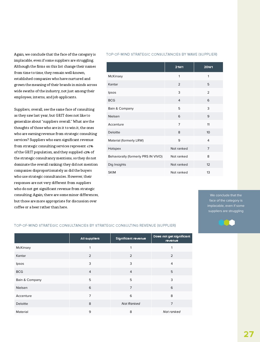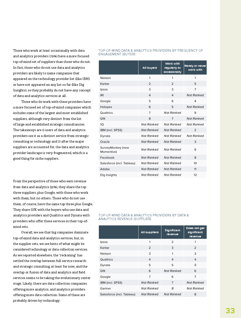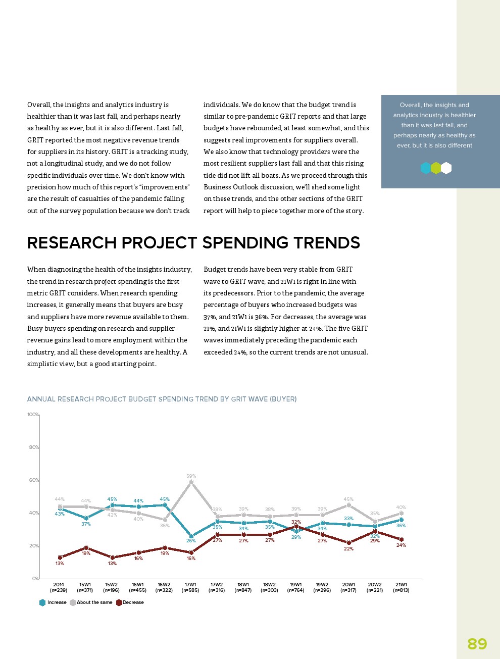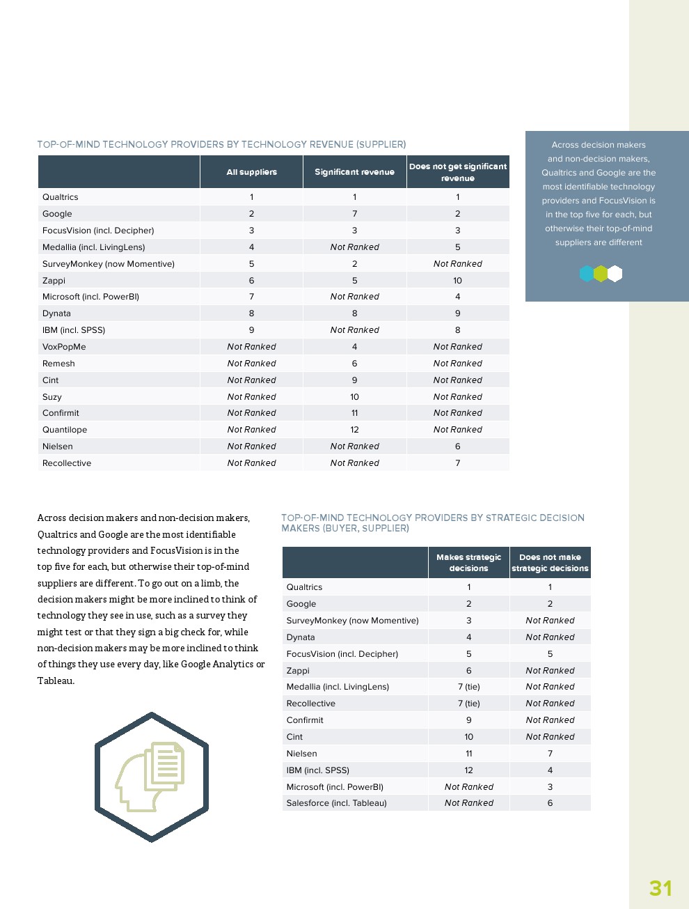此外,虽然人们希望研究行业在2020年转移到与大流行相关的主题,但AI、过程自动化和数据分析等主题是今年人们最关心的。事实上,提供技术研究(+86%)和数据与分析(+68%)供应商报告收入大幅增长。