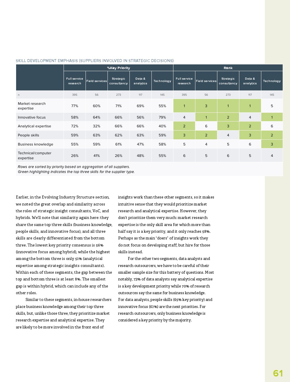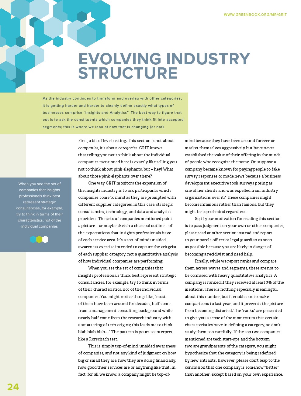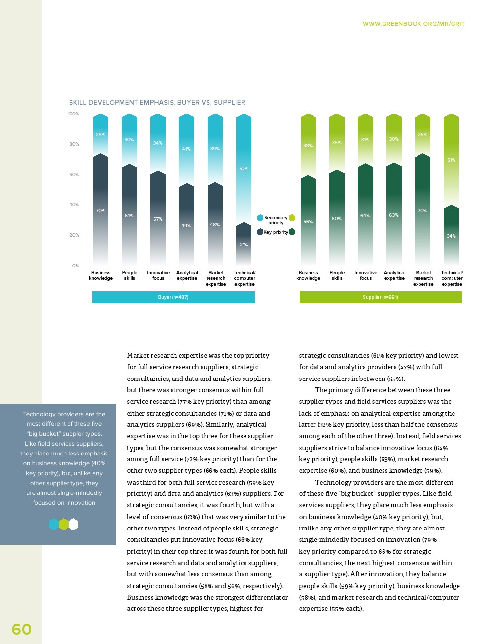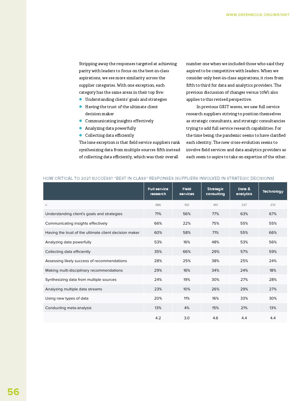 GRIT调查了哪些市场研究供应商是最具创新性的,并要求从5个类别中选择一个来描述这些公司:数据和分析提供商;正式和/或现场服务机构;定性研究提供者;战略咨询;或技术提供商。