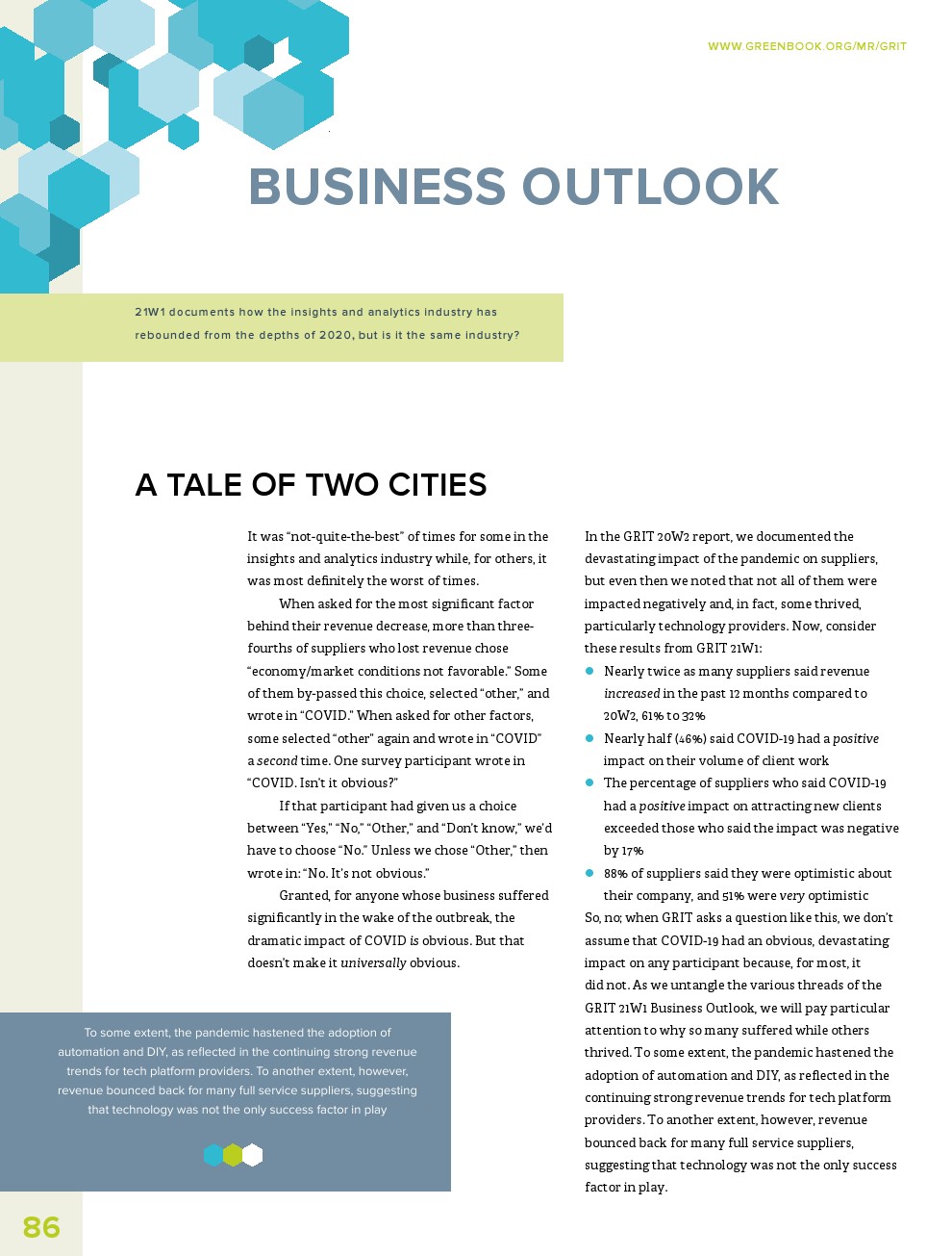 最新的GRIT报告显示,供应商的乐观情绪回到了大流行前的水平。