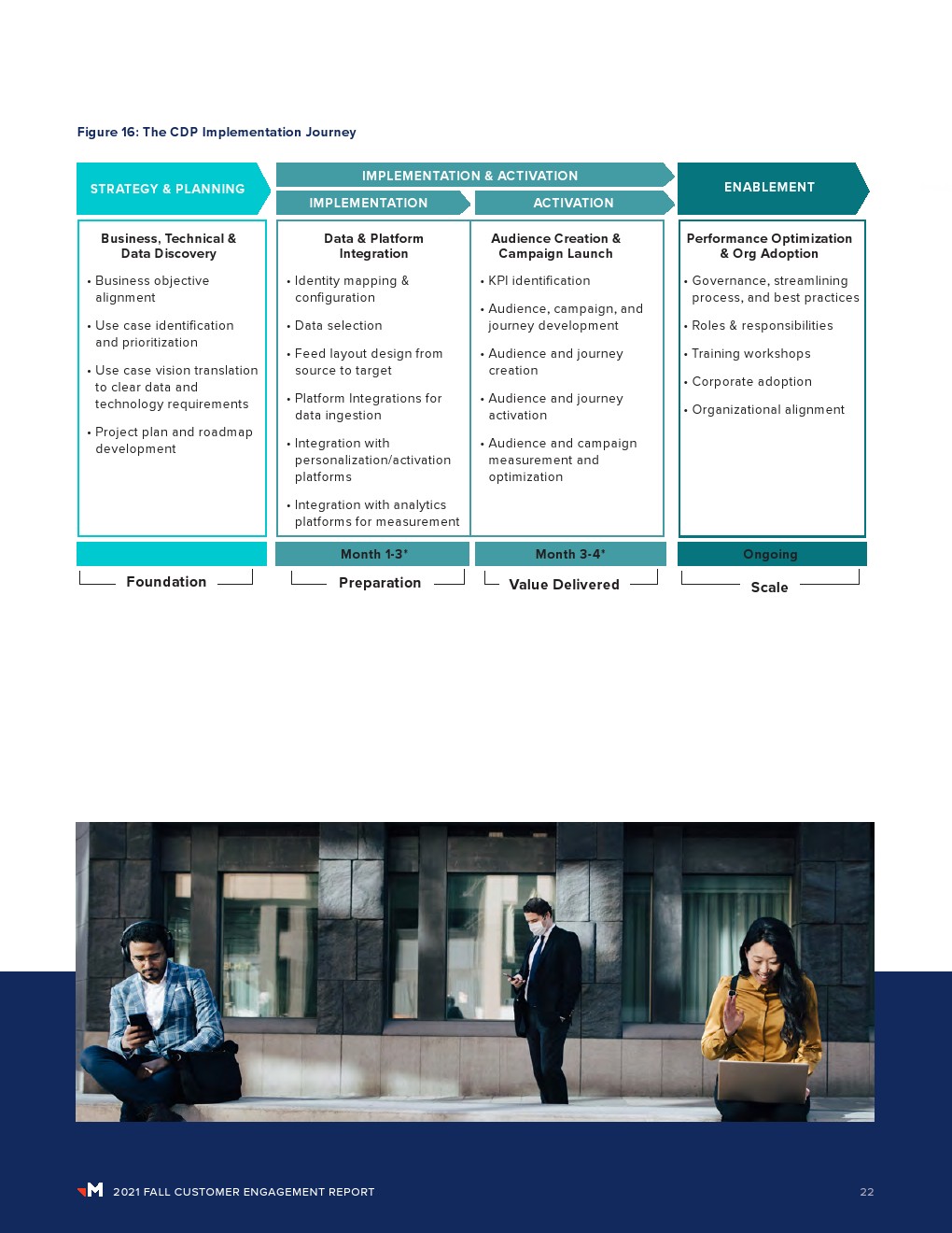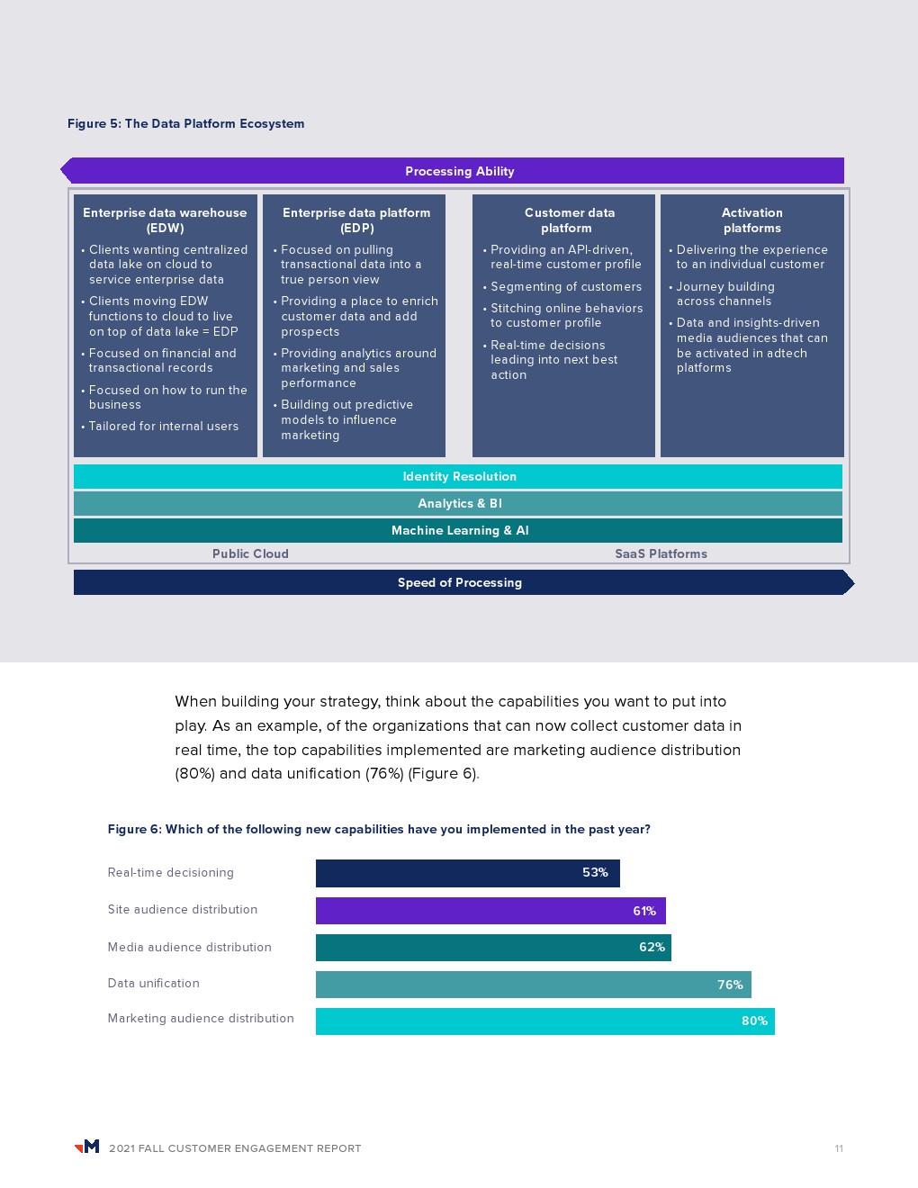 当被问及CDP预期提供的主要价值时,结果在技术整合(28%)、改进客户体验(28%)和增加收入(23%)之间平均分配。56%的受访者还表示,他们的CDP已被证明是适应新客户战略的主要支柱。