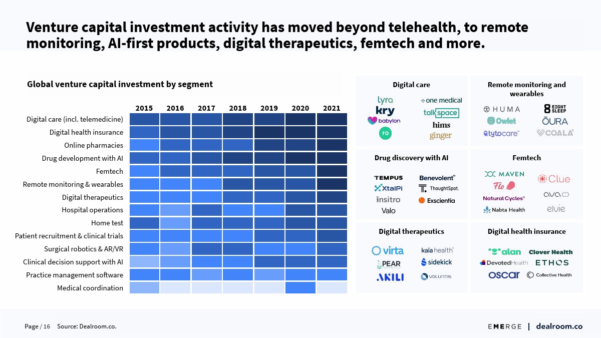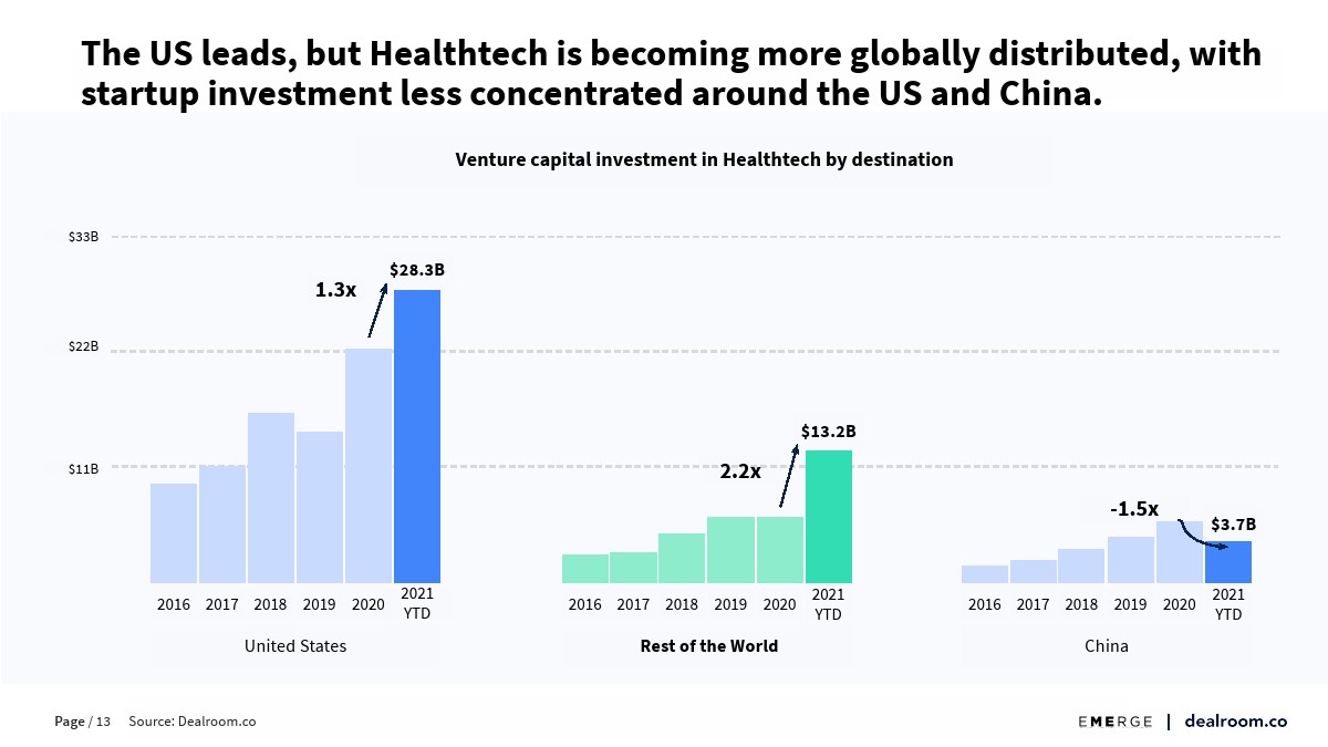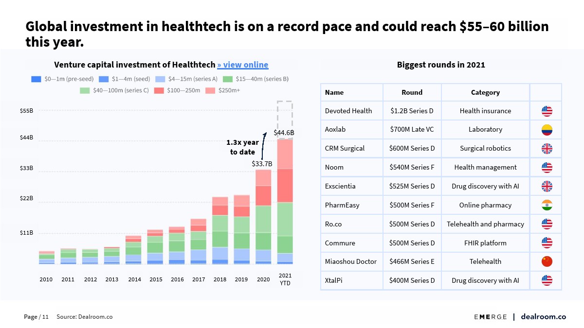 Dealroom发布了“2021年全球健康和生物科技投资报告”,健康科技和生物技术初创公司继续发布创纪录的投资和估值数据。
