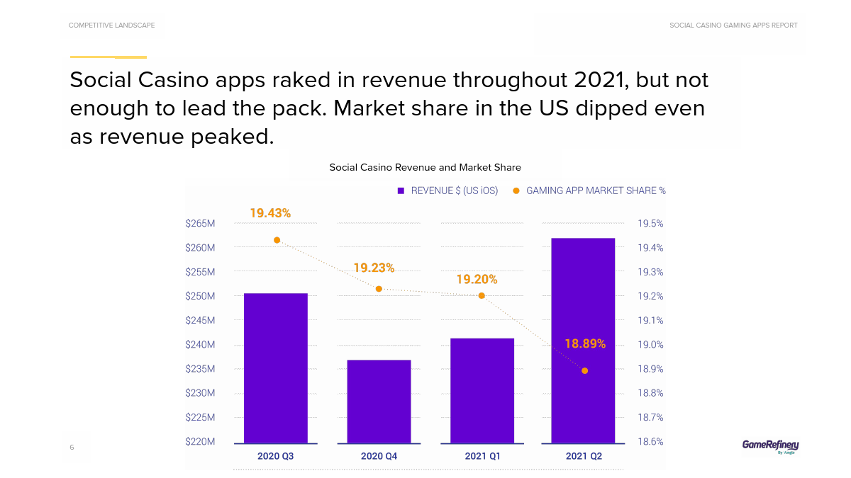 预测期内,美国社交博彩应用程序在iOS上的收入就接近10亿美元。尽管取得了成功,但社交博彩占游戏应用程序的份额略有下降,比前一年减少了1个百分点。