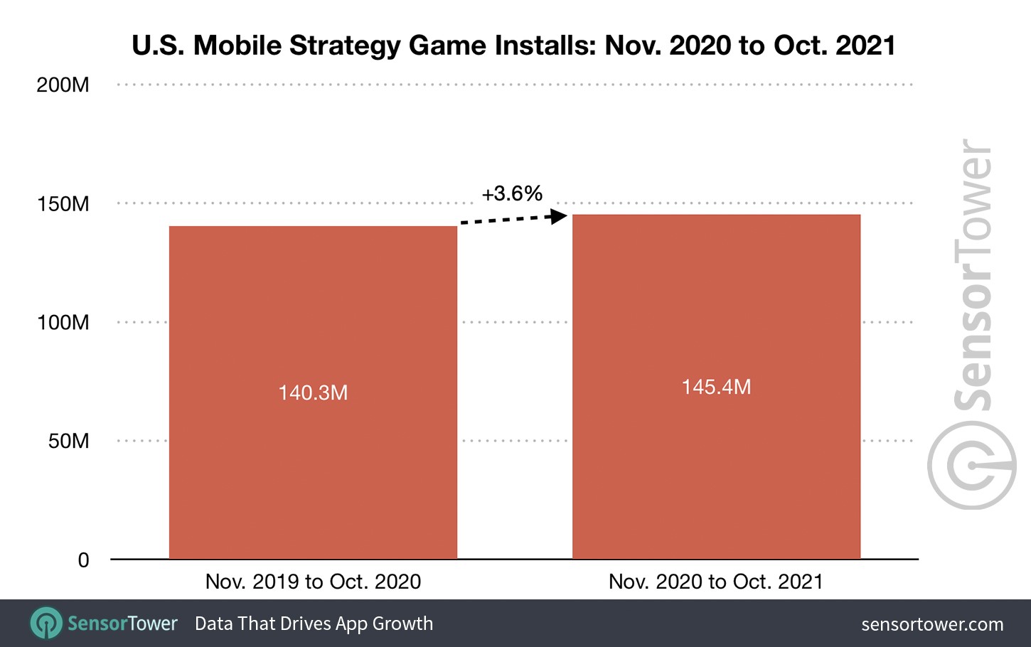 据Sensor Tower的数据,过去12个月美国手机战略游戏玩家支出增长23.5%,达到42亿美元。