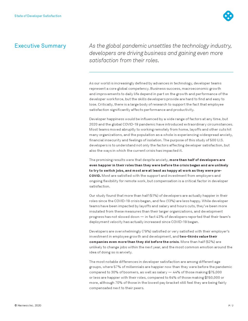 开发者的幸福在任何时候都会受到各种因素的影响,尤其是2020和全球新冠大流行带来了非同寻常的情况。大多数团队突然转移到远程工作,裁员和类似的措施打击了许多团队,整个行业正经历广泛的焦虑、财务不安全和孤立感。这项针对500名美国开发人员的研究的目的不仅在于了解影响其满意度的因素,还分析了当前危机对其产生影响的方式。