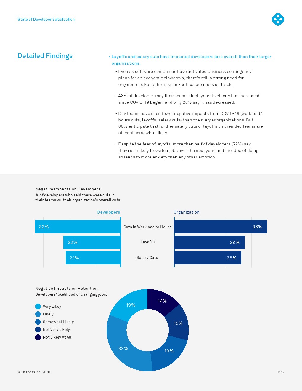 绝大多数开发人员(79%)对其雇主在员工成长和发展方面的投资感到满意或非常满意,2/3的受访者比危机前更看重他们的公司。52%的受访者不太可能在明年内换工作。