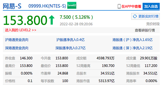 新浪科技讯 2月28日上午消息,香港恒生指数开盘涨0.22%,报22818.17点;恒生科技指数涨0.43%。网易港股开涨超5%,京东港股开涨超2%