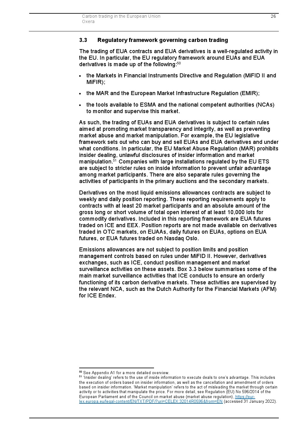 受ICE委托,Oxera编写的这份独立报告旨在为ESMA对欧盟碳市场的评估提供信息。Oxera对市场微观结构和环境经济学文献进行了全面回顾、分析了市场数据,并采访了市场参与者。
