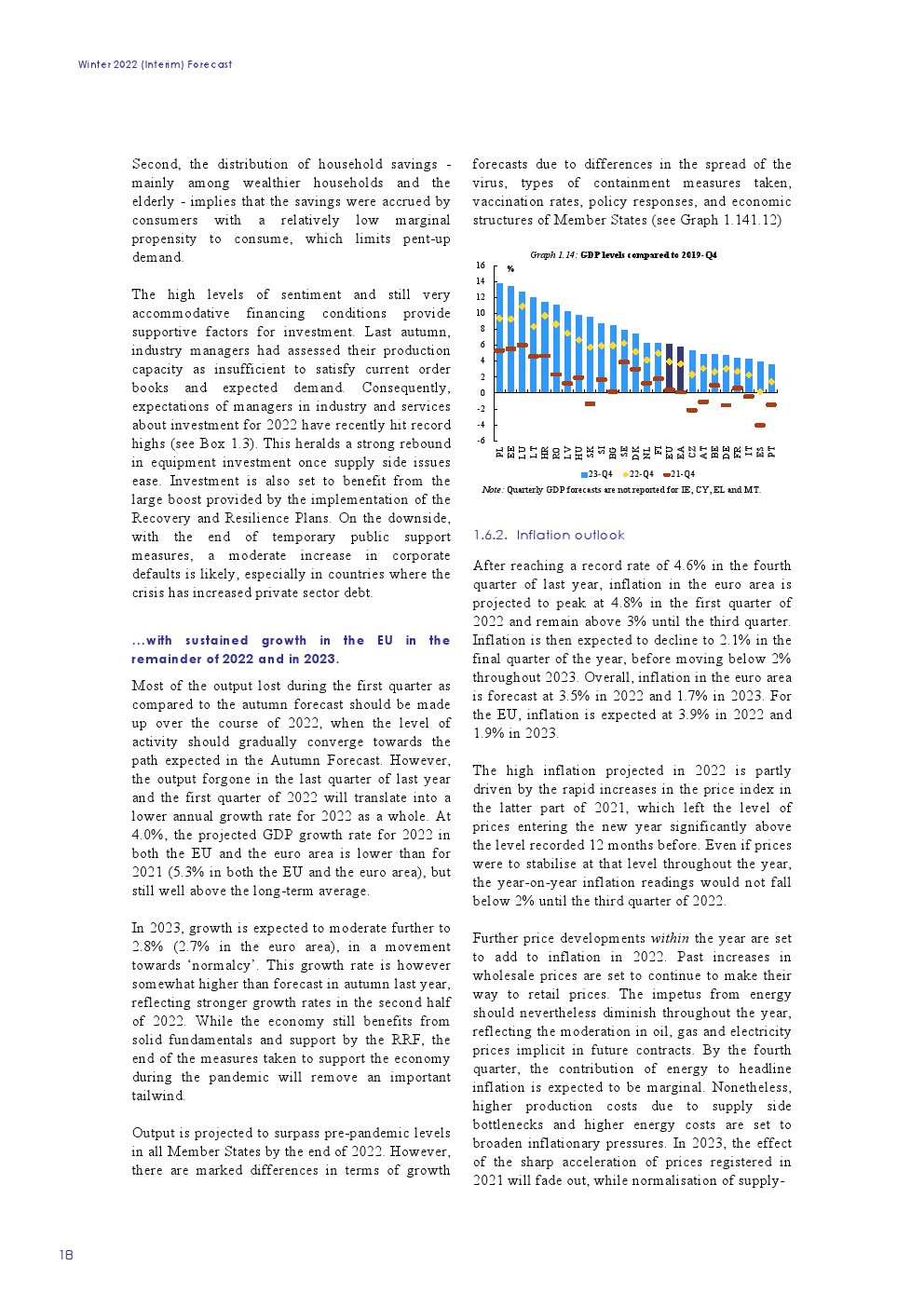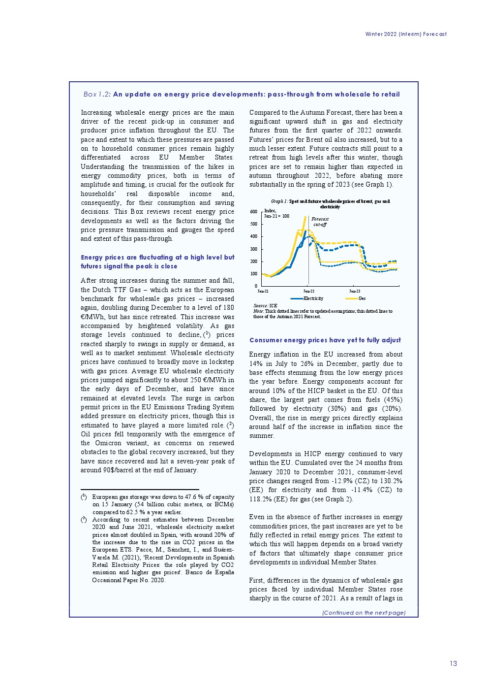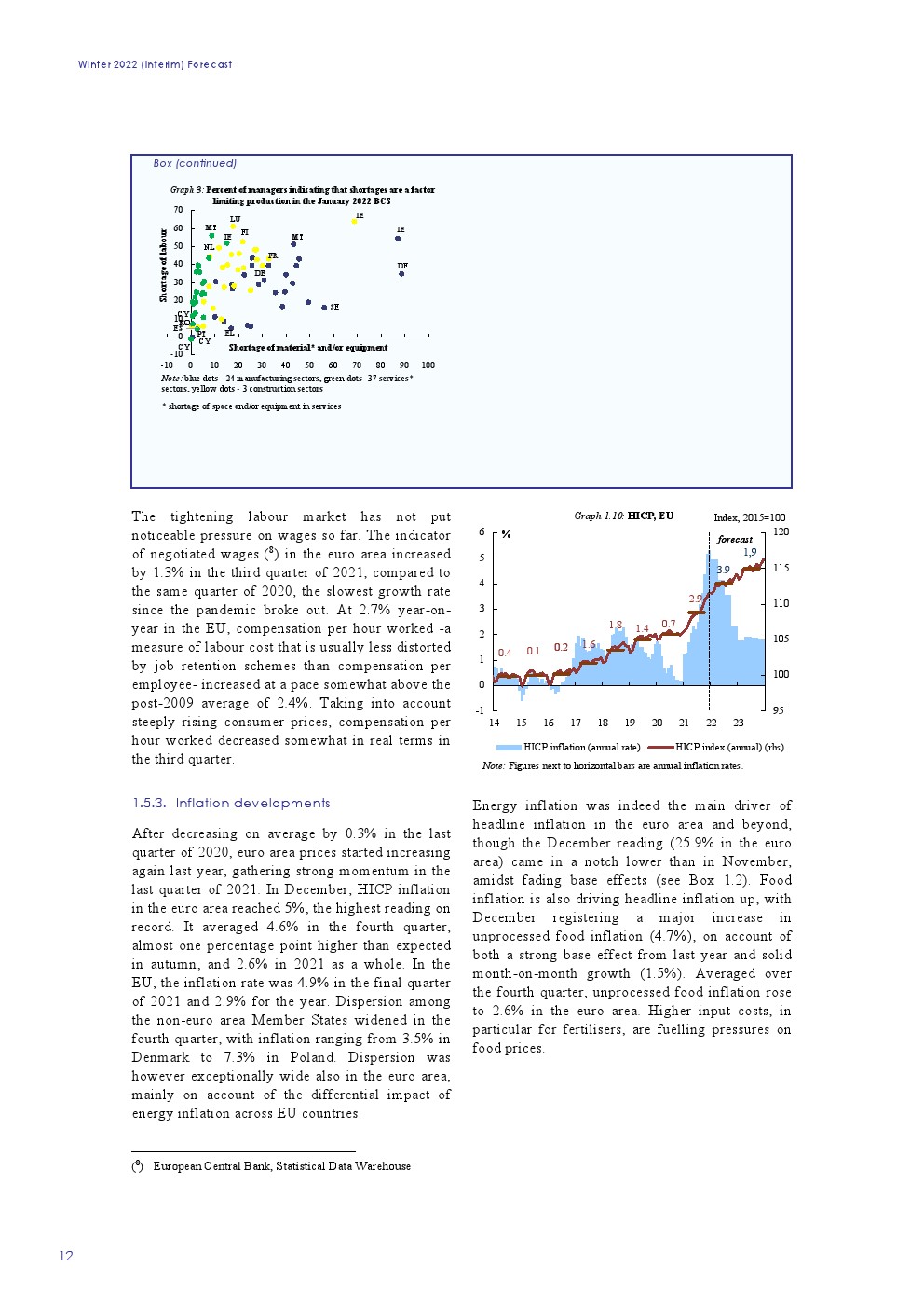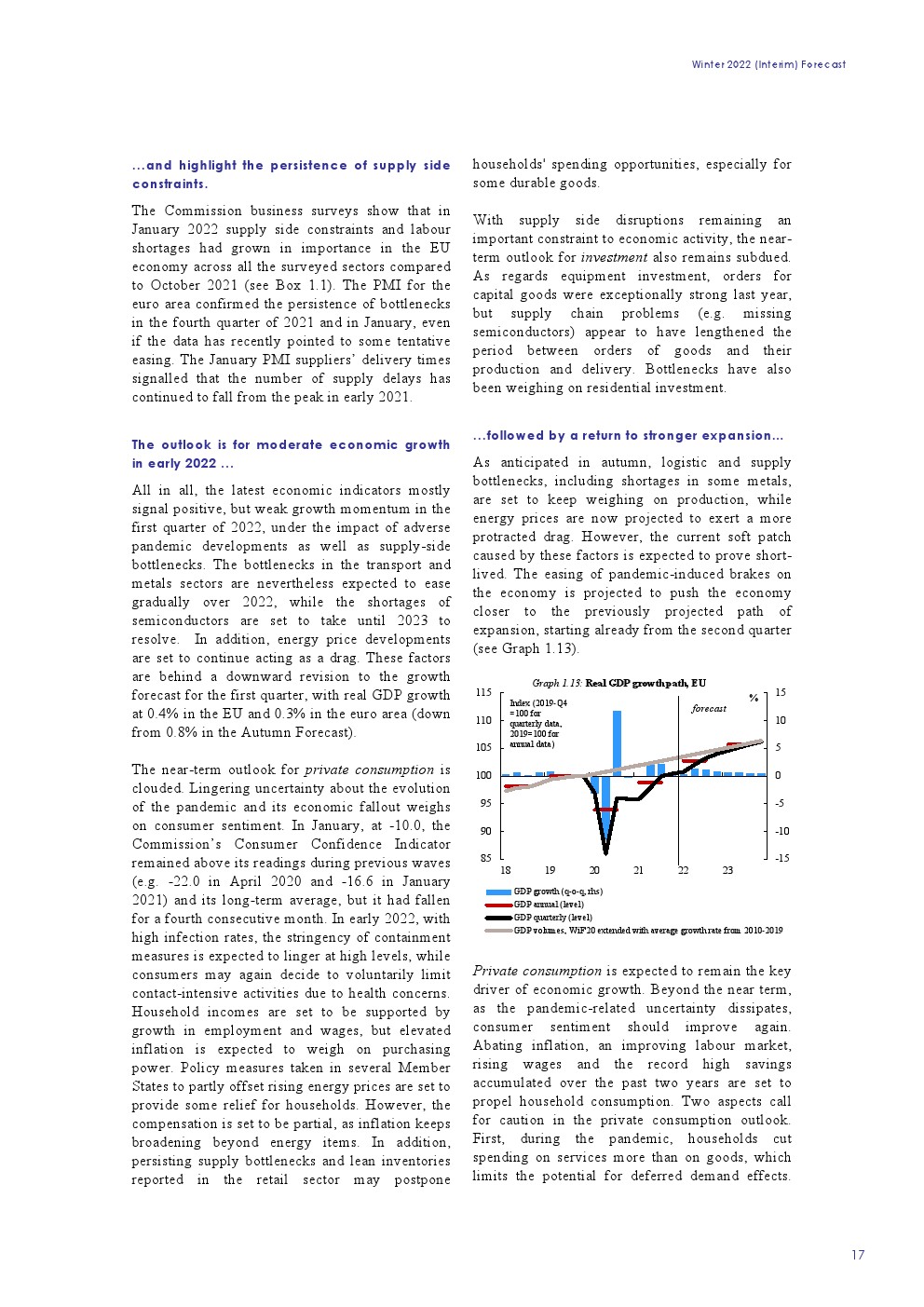 去年秋天大流行的死灰复燃和新的奥密克戎变体的指数级传播导致医疗系统面临新的压力,许多欧盟国家的缺勤率激增。欧盟各国政府已经恢复了限制,尽管通常比前几波更温和或更有针对性。持续的物流和供应瓶颈,包括半导体和一些金属的短缺继续对生产造成压力,能源价格上涨也是如此。强于预期的通胀压力给家庭购买力带来额外压力。