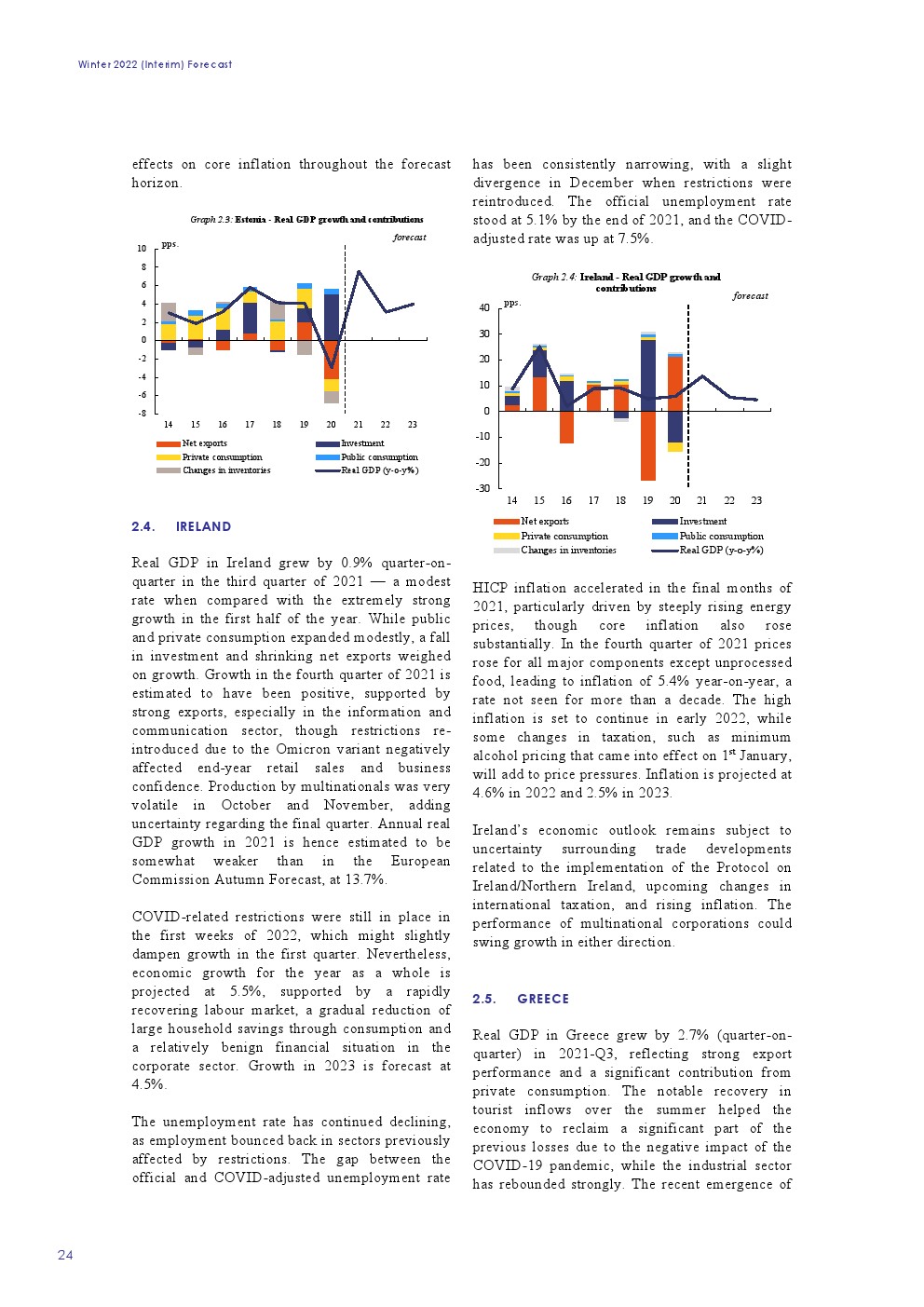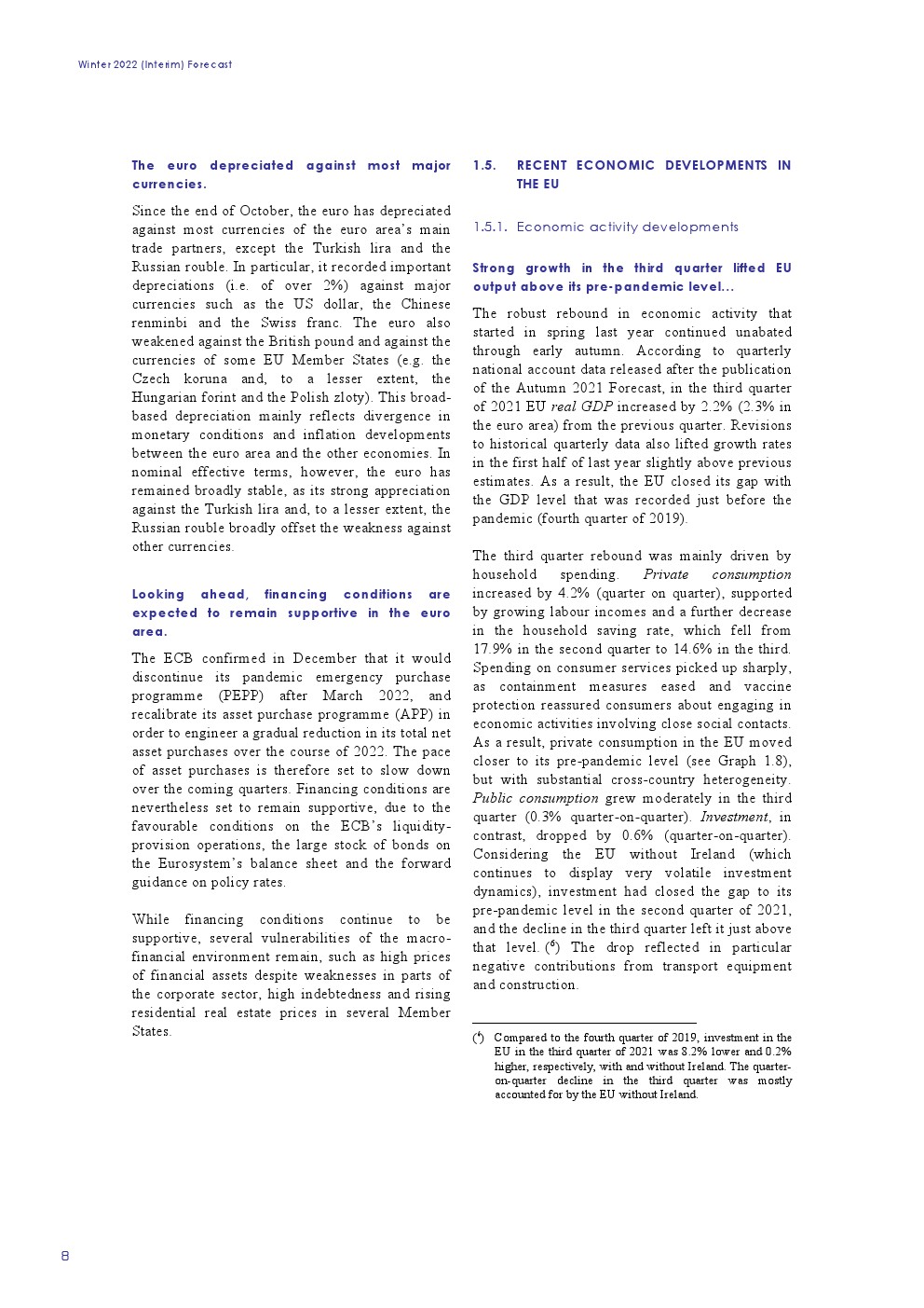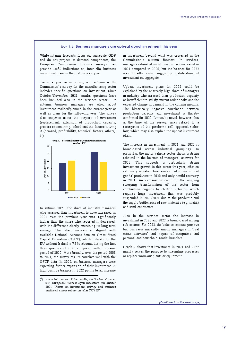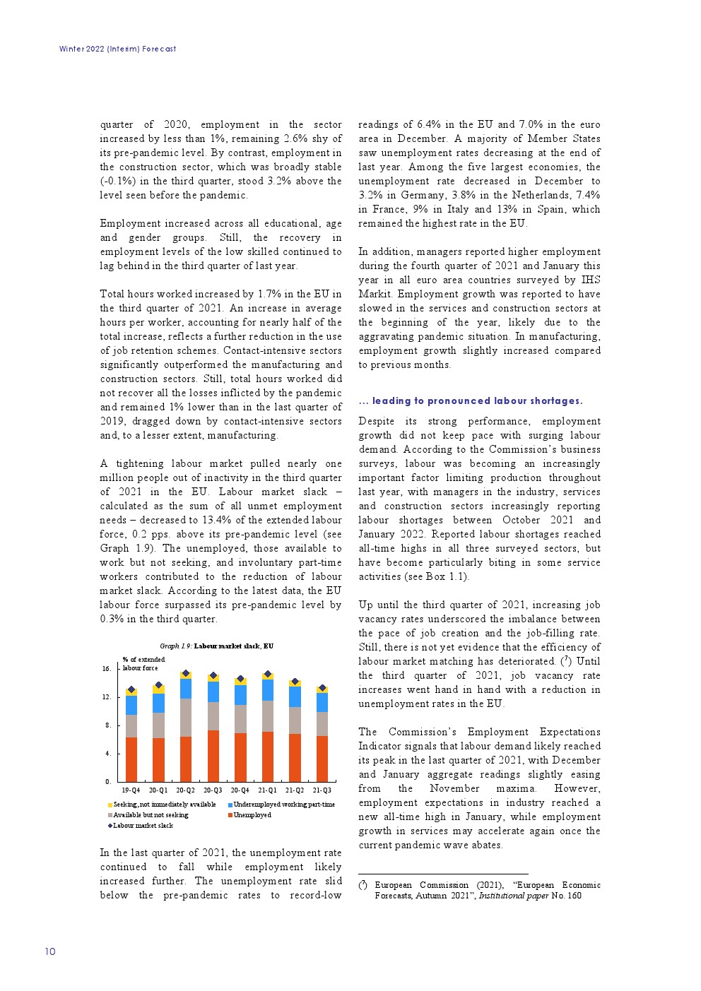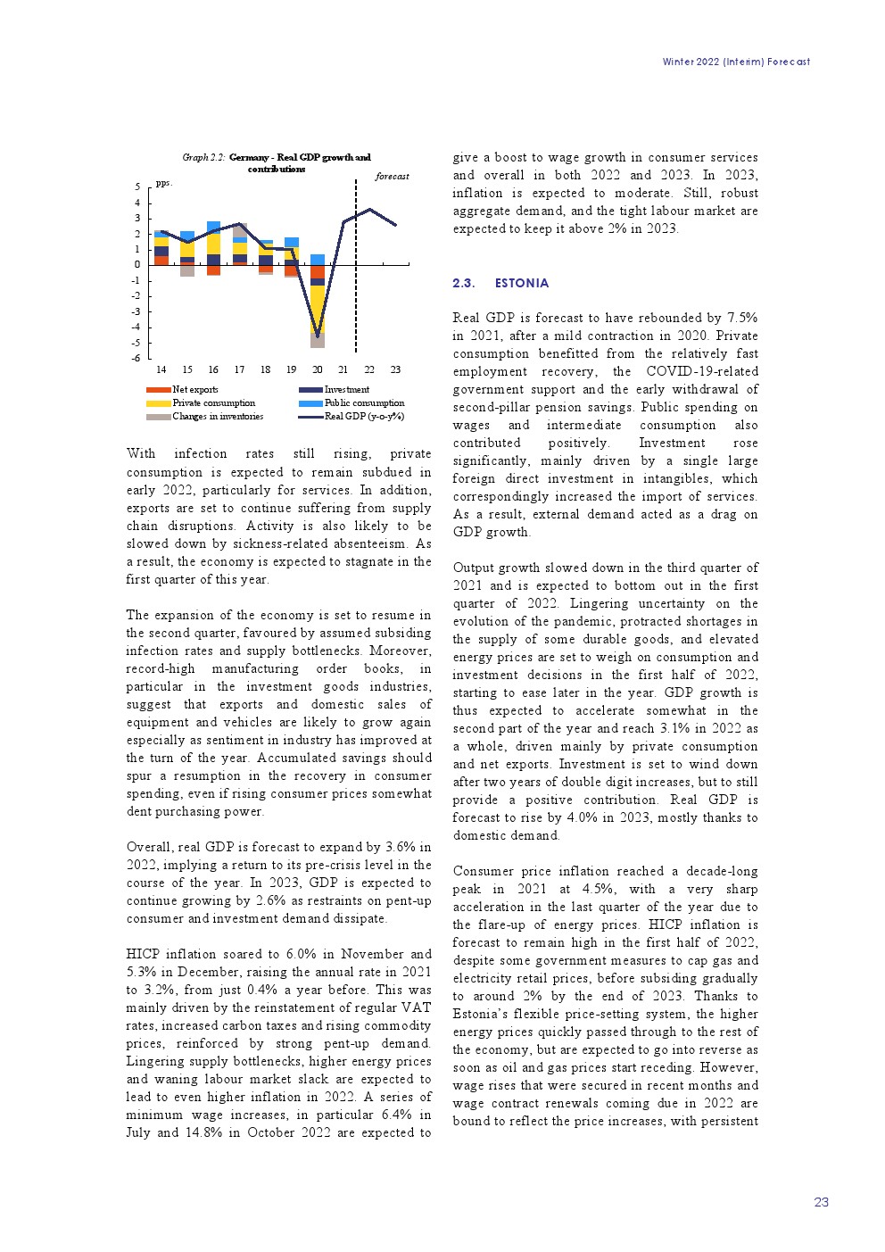 去年秋天大流行的死灰复燃和新的奥密克戎变体的指数级传播导致医疗系统面临新的压力,许多欧盟国家的缺勤率激增。欧盟各国政府已经恢复了限制,尽管通常比前几波更温和或更有针对性。持续的物流和供应瓶颈,包括半导体和一些金属的短缺继续对生产造成压力,能源价格上涨也是如此。强于预期的通胀压力给家庭购买力带来额外压力。