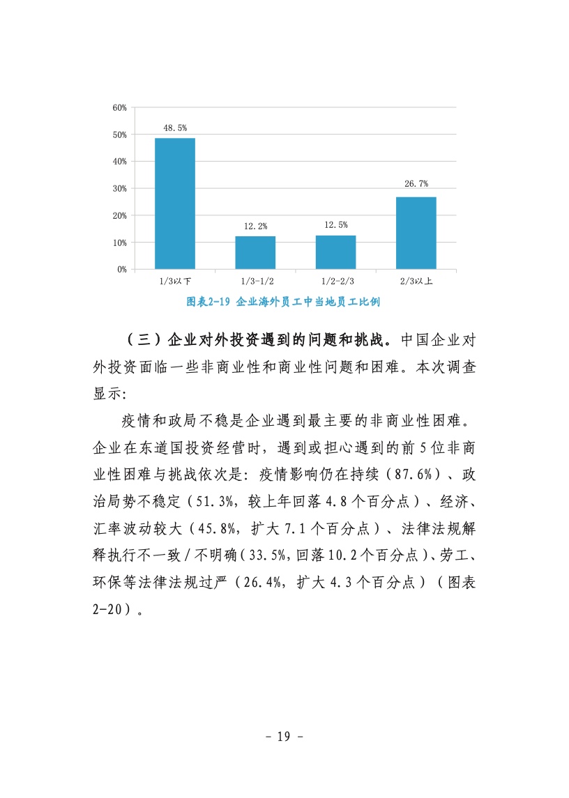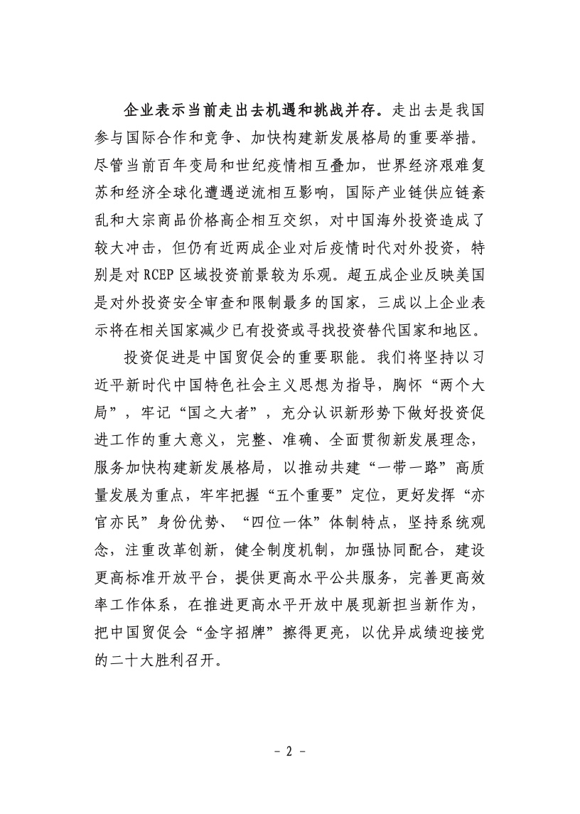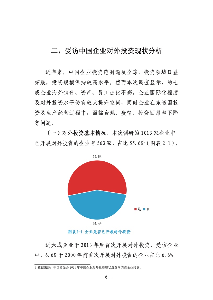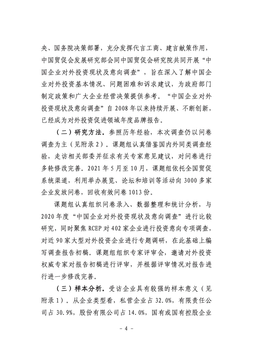 《中国企业对外投资现状及意向调查报告(2021年版)》(以下简称《报告》)显示,企业将增加对RCEP国家投资,超八成企业对RCEP国家投资发展前景持乐观或一般态度,超五成企业对RCEP国家投资意愿增加或不变。