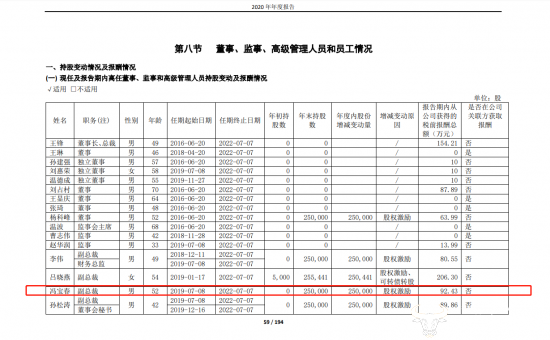 据玲珑轮胎2020年年报显示,冯宝春报告期内获得公司税前报酬92.43万元。此外,报告期内他还持有公司250000股股票。