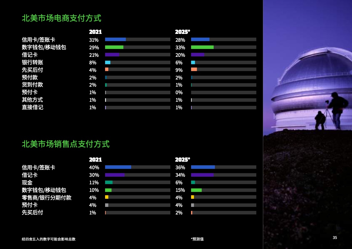 另外,在新冠疫情的影响下,全球范围内的现金支付份额持续走低。和中国一样,全球其他国家或地区也在向无现金化未来迈进,预计至2025年,在全球销售点总交易额中的现金支付份额将低于10%。