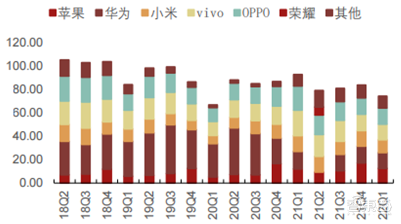智能手机:国内疫情反复使手机需求进一步疲软。3 月以来受新冠疫情、俄乌战争、通胀等因素的影响,预计国内手机需求将持续走弱。根据 Counterpoint 最新的报告,2022 年第一季度中国的智能手机销量同比下降 14%,为7420 万部,增长动能减弱,季度销量接近于受疫情影响的 2020 年第一季度的水平。