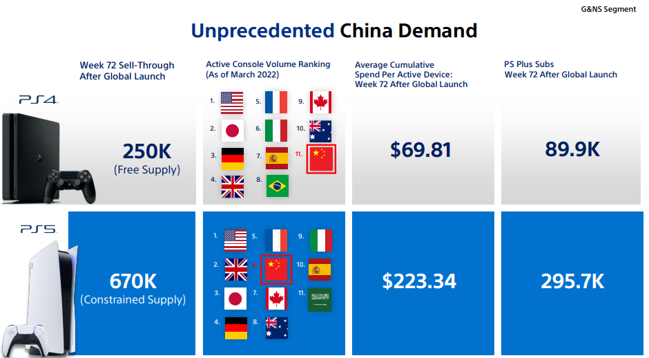 索尼指出,中国玩家对PS5有着前所未有的需求。