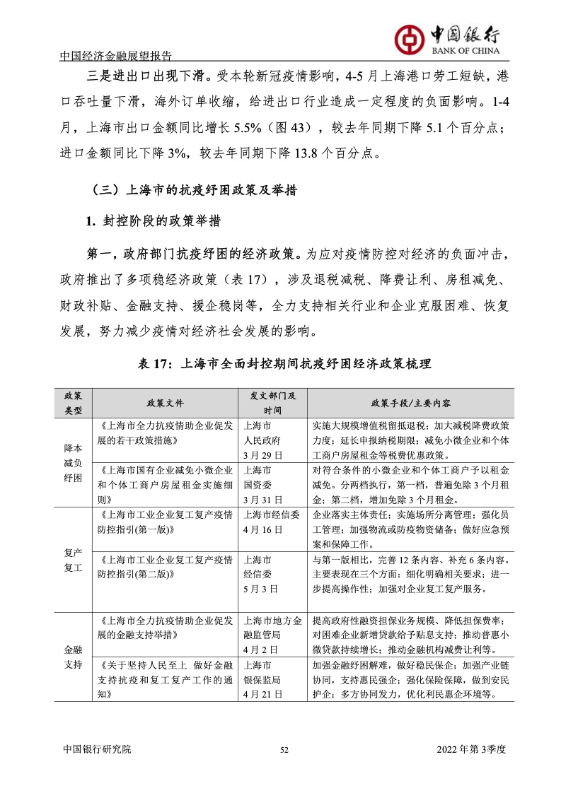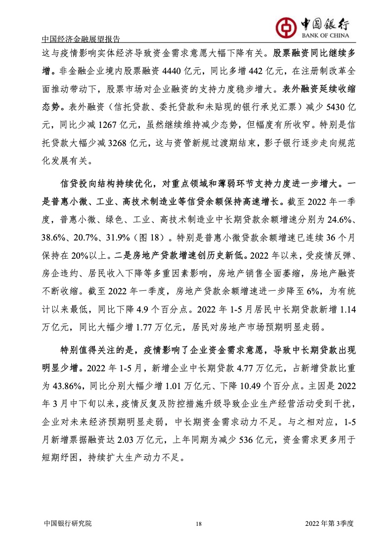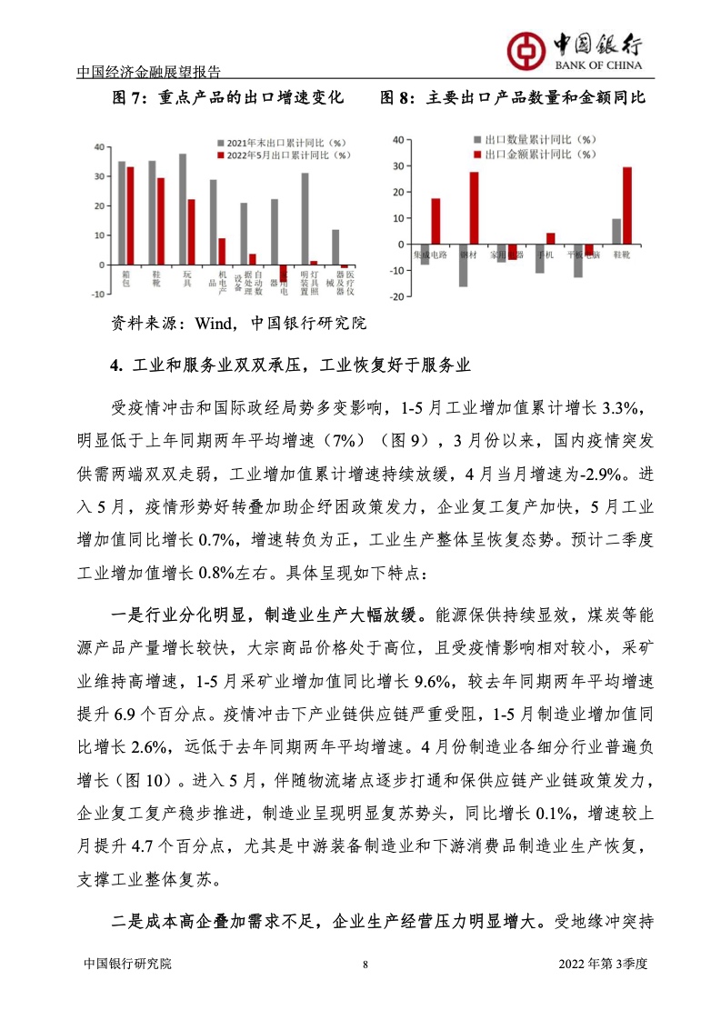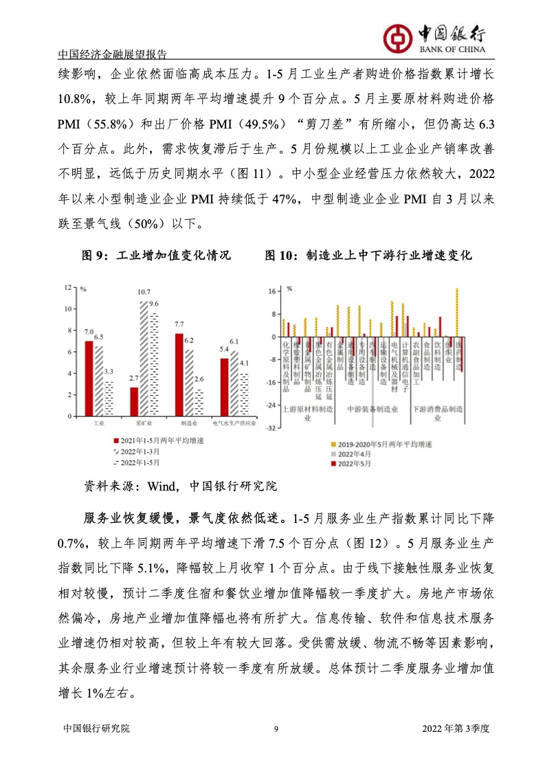《报告》认为,2022年上半年,受俄乌冲突及其制裁措施、国内新一轮疫情及其管控政策等超预期因素冲击,中国经济面临的“三重压力”持续增大,供需双双下滑,市场预期恶化。一季度GDP增长4.8%,预计二季度GDP增长1%左右。