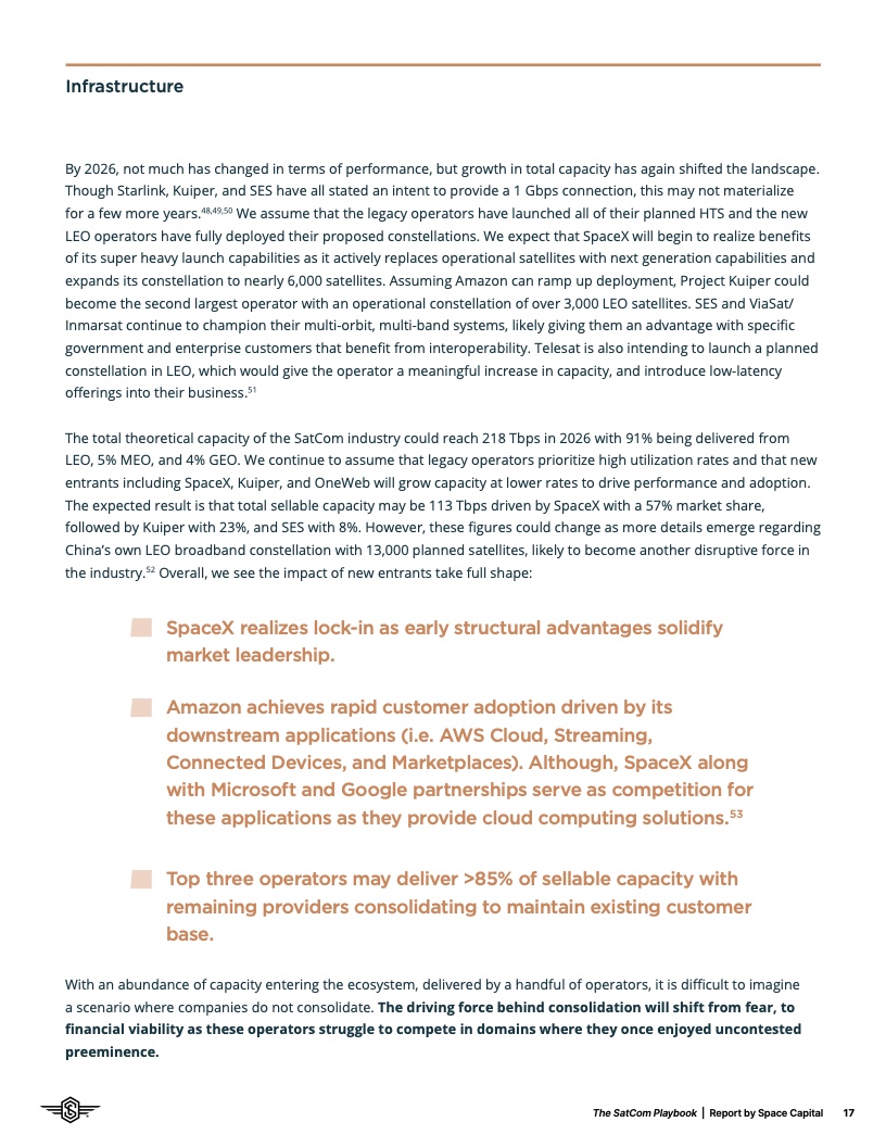 当前的卫星通信基础设施架构是建立在预售容量和高利用率的基础上,有助于分摊前期的高昂建设成本并最大限度地发挥资产的收入潜力。卫星运营商的“容量”的利用率不高导致其在卫星发射方面更加保守,并有意创造卫星通信容量稀缺的气氛以限制用户可用的带宽量,限制了服务的数量及潜在应用。随着“星链”(Starlink)服务的推出及更多卫星服务的引入,卫星通信服务水平将不断改善。