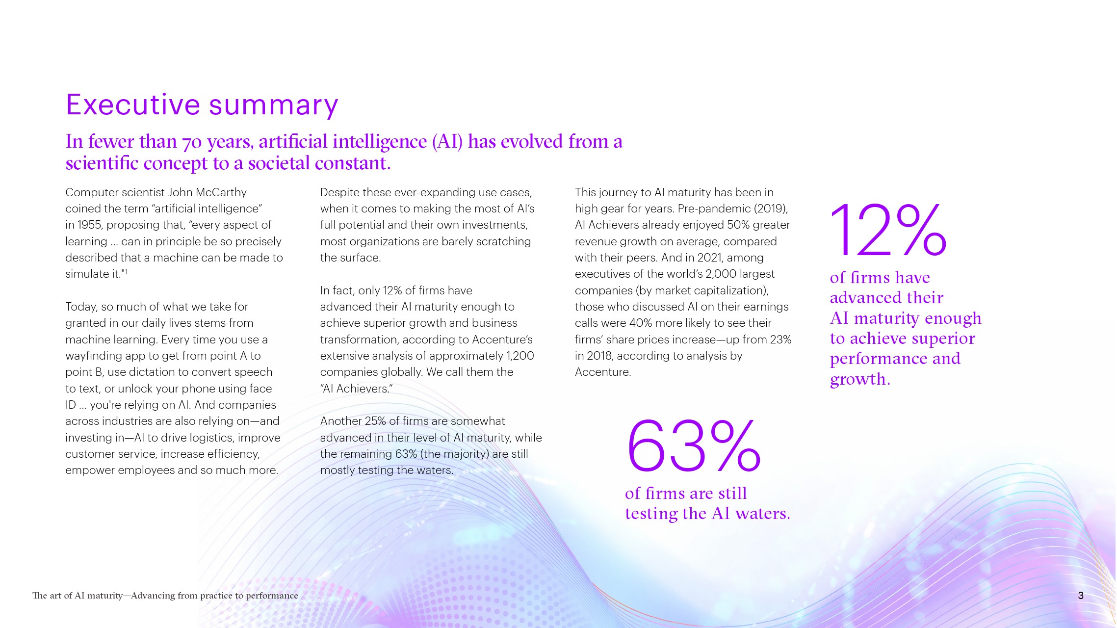 根据埃森哲最新的全球研究,虽然大多数使用人工智能(AI)的企业仍在试验这项技术,但只有12%的企业在使用成熟的人工智能,从而获得强大的竞争优势。