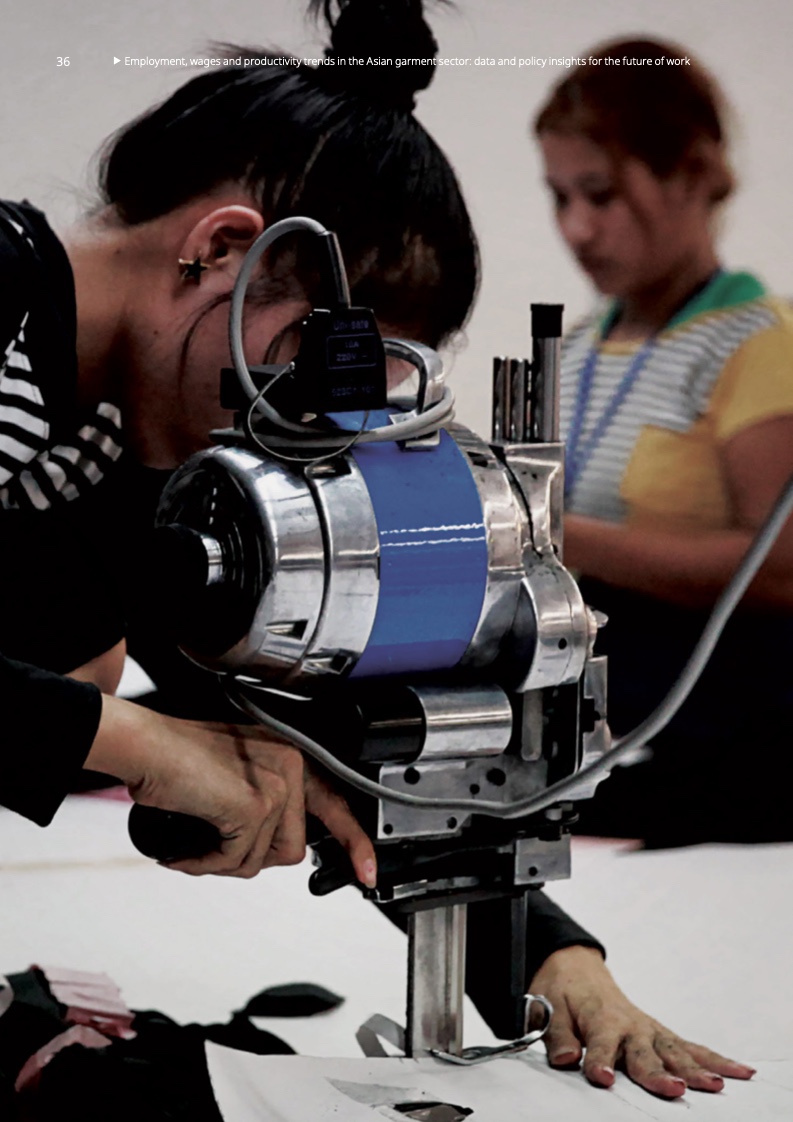 虽然近几十年来亚洲服装行业的劳动生产率有所提高,但与其他制造业相比仍处劣势。很少有服装生产国成功提升了服装生产的价值链,大多数制造商仍在从事低技能的“剪裁–制作–修裁”工作。