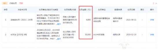 戴永忠被调到中国铁塔长沙市分公司之后,“基础设施被盗”的现象虽然没再出现过,但该企业却曾先后因违反《中华人民共和国固体废物污染环境防治法》《危险废物转移联单管理办法》及《长沙市城市绿化条例》,被长沙市环保局、浏阳市城市管理和综合执法局行政处罚过两次,处罚金额累计达到54800元。