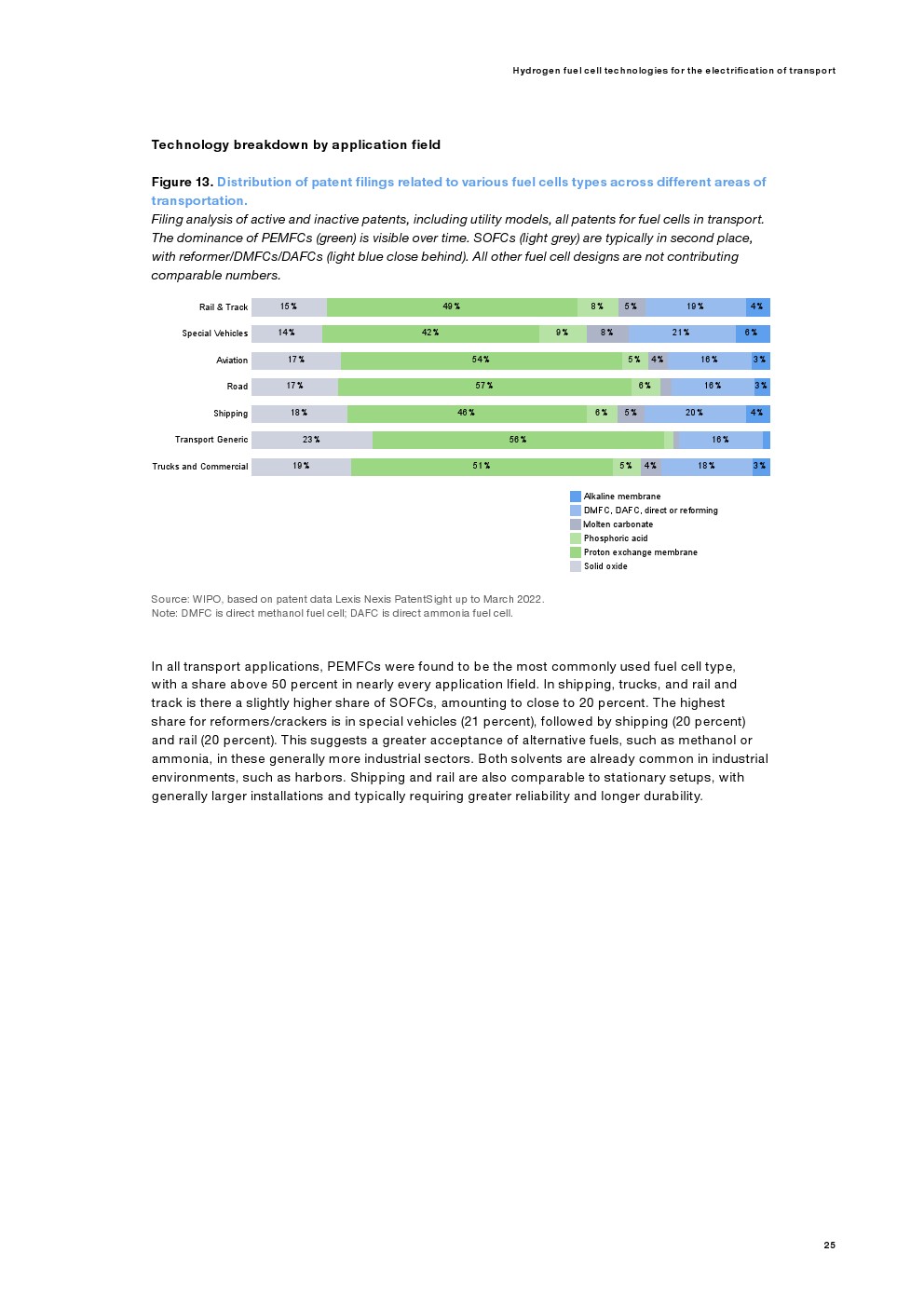 燃料电池运输行业的前30名参与者占专利数据集的40%。这种相当高的集中度类似于在电动汽车中观察到的情况(前30名参与者占数据集的43%),并表明该行业的市场参与者的投资水平。