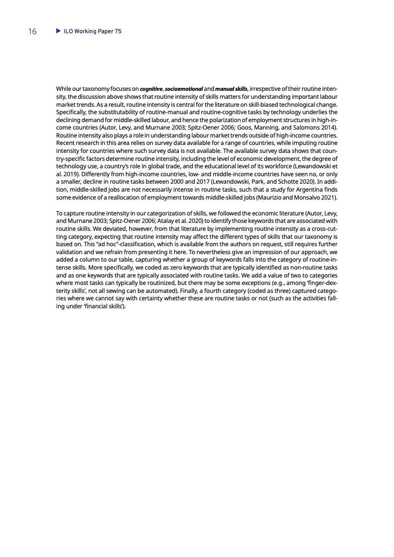 利用乌拉圭招聘网站BuscoJobs的数据,《利用在线空缺和求职者数据研究技能动态》一书的作者创建了一个技能分类法,该分类法汇总了三大类技能——认知、社会情感和手工劳动,以及与解决问题、批判性思维、团队合作、沟通或手指灵活性等技能相关的14个普遍观察和可识别的子类别。